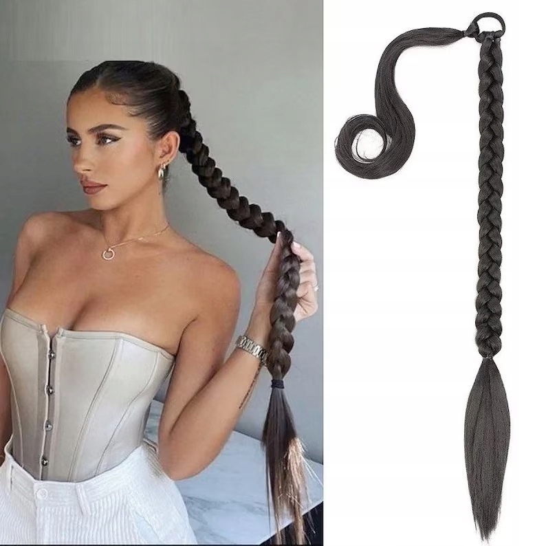 Кінський хвіст, косичка виготовлена з високоякісних термостійких синтетичних волокон, які є гладкими та м’якими, завдяки чому заплетений хвіст виглядає природно, як ваше власне волосся, і має універсальне використання. Вони кріпляться за допомогою м’яких гумок і заплетеного хвоста p>