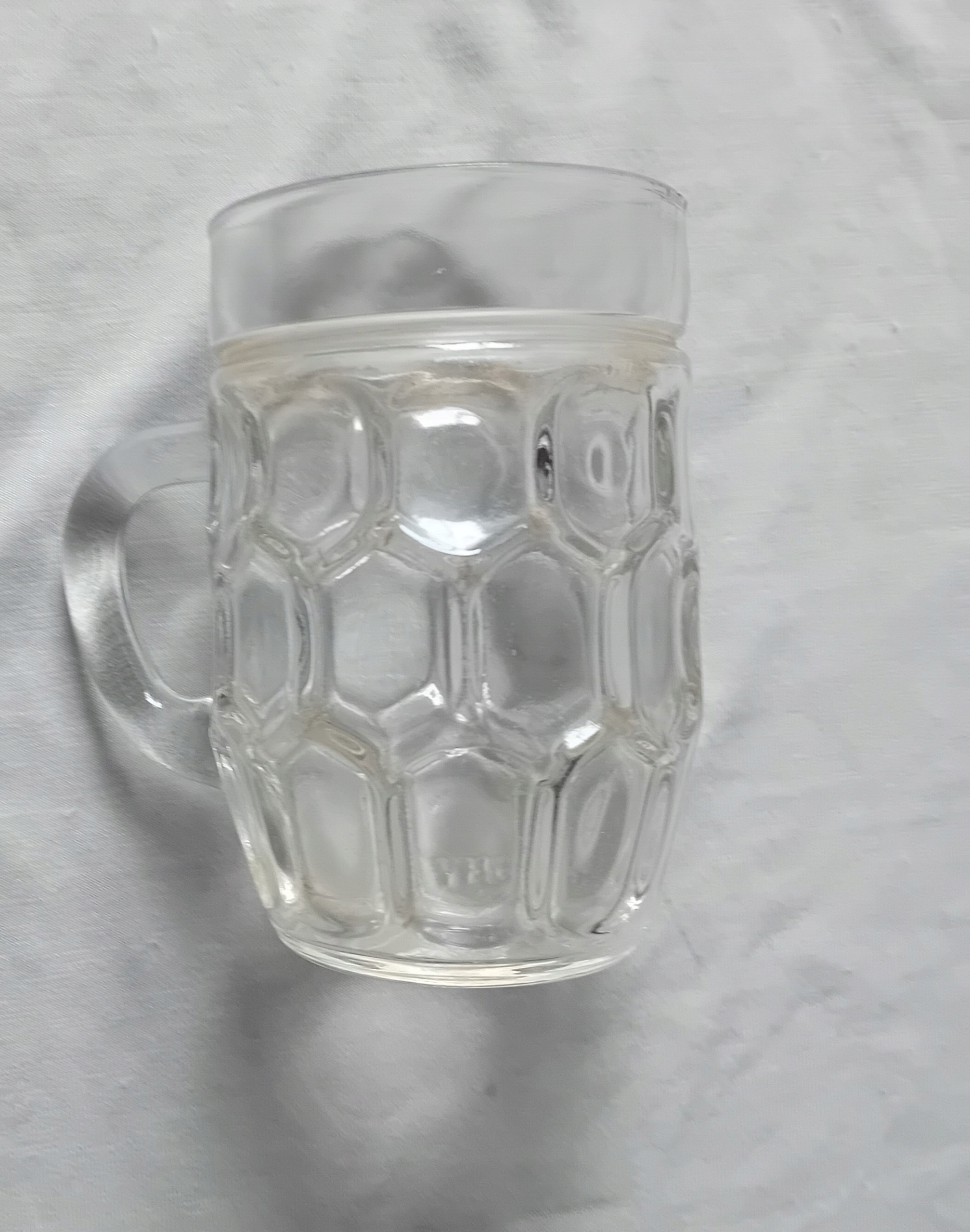 Kufel do piwa 0,2 l, PRL. Wzór - sześciokątna kratka.