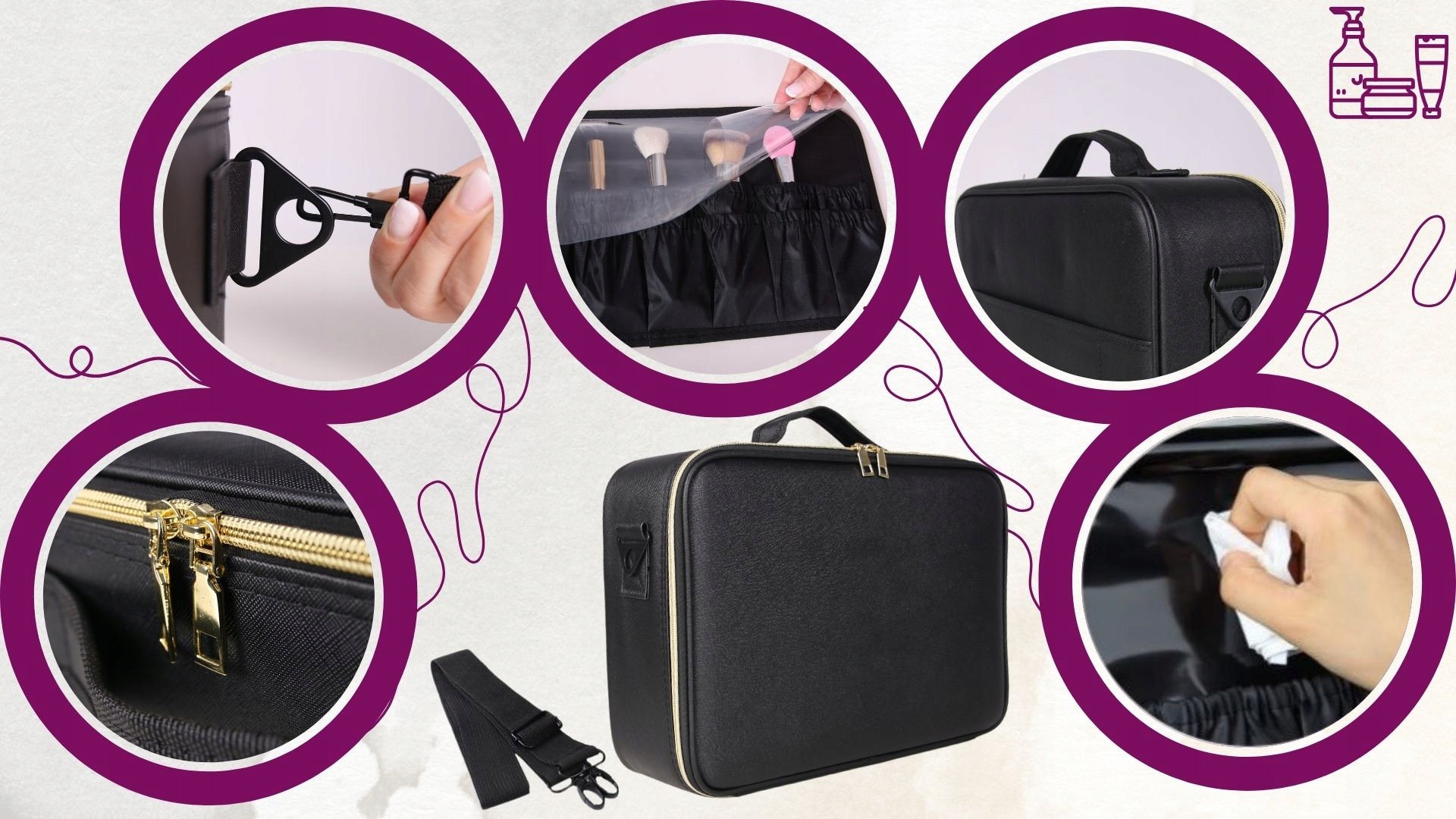 • Комфорт у дорозі та використанні - косметичку можна використовувати як сумочку або наплічник. На задній стінці є ручка, щоб ви могли поставити кейс на свій багаж. Наш кейс для косметики дозволить вам організувати свою косметику під час подорожі. Вдома ви можете поставити його на туалетний столик і він може виступати в якості органайзера для косметики.