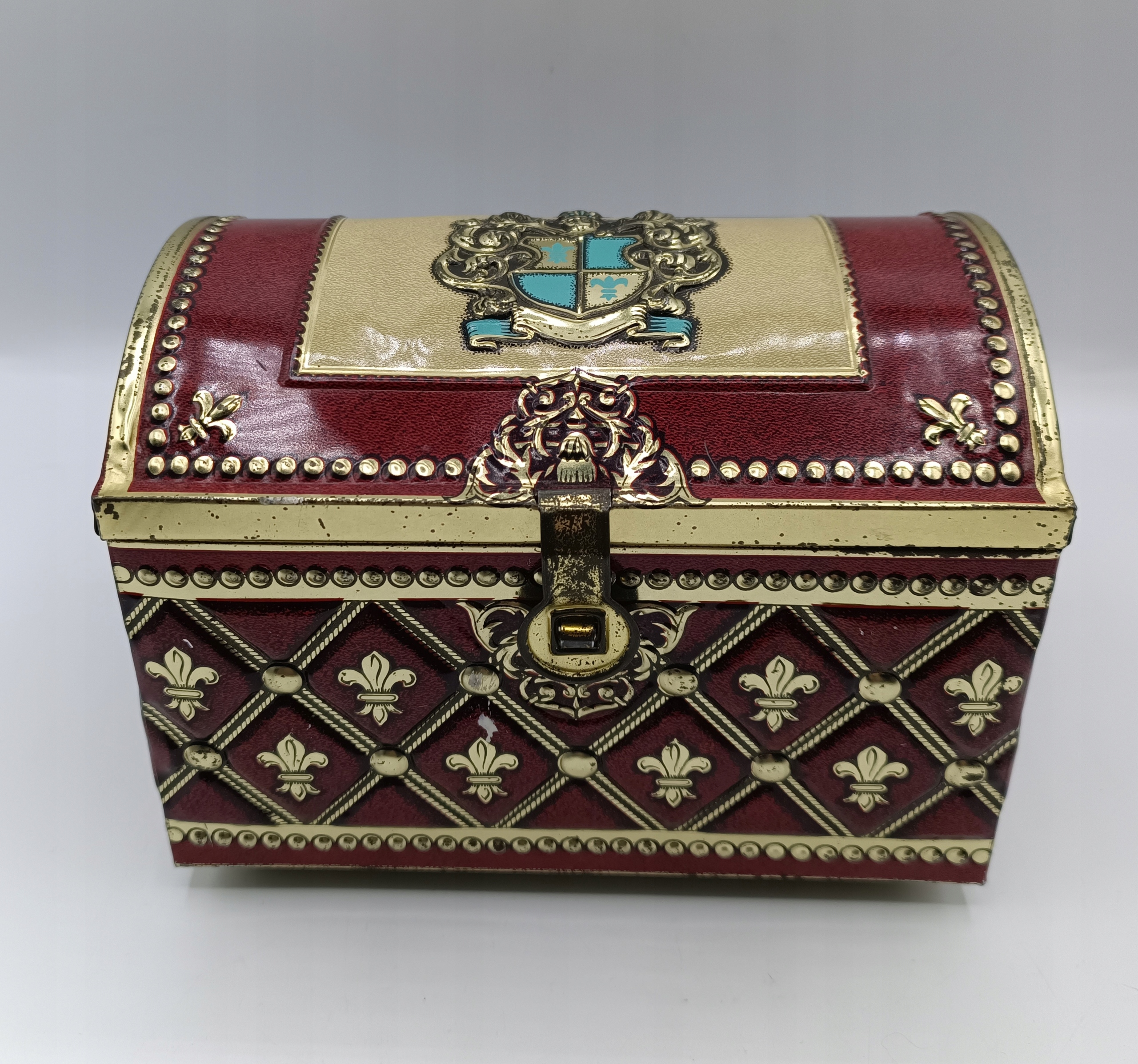 Kufer z pałacu z herbem - świetna vintage metalowa puszka - 15,5 cm