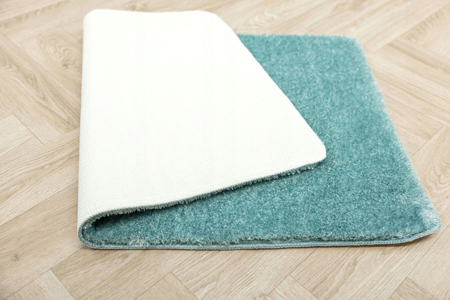 Мальмовий килим з м'яким і приємним на дотик, пухнастий, поліестерний вал у тіні, що з'єднує синій і бірюзовий з дном.