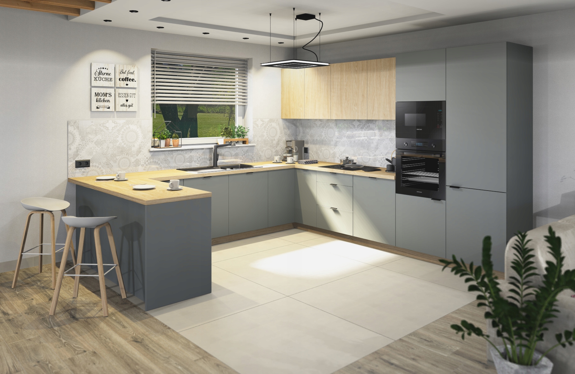 • - колір фасадів верхніх шаф: матовий (ПВХ) ),