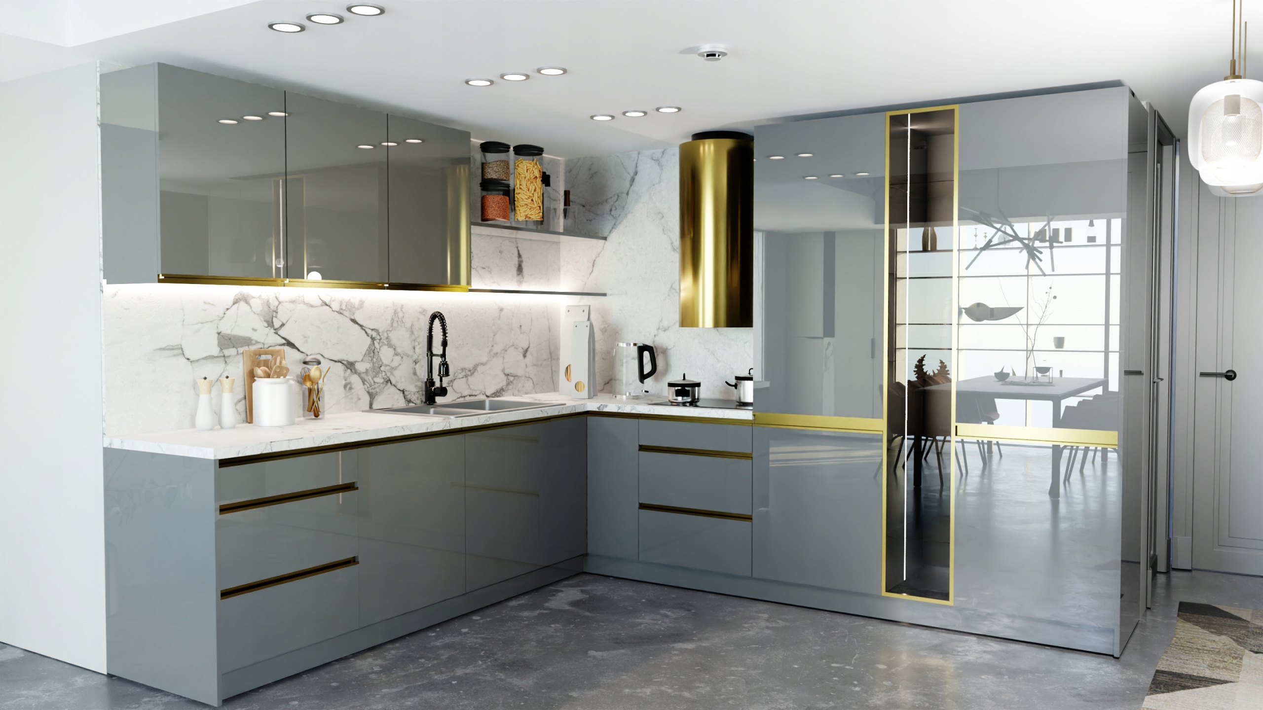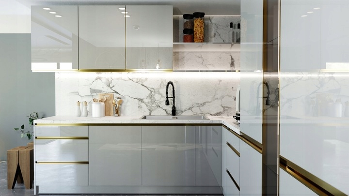 Сучасний кухонний гарнітур із глянцевого або матового акрилу Paris