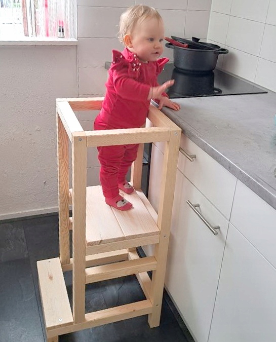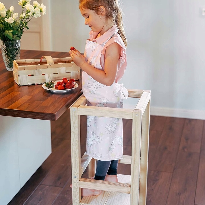 Стійкість і регульована висота: багато кухонних помічників виготовлено з міцних матеріалів, таких як соснова деревина, що забезпечує довговічність і тривале використання. Крім того, більшість моделей мають можливість регулювати висоту, що дозволяє адаптувати її до росту дитини.