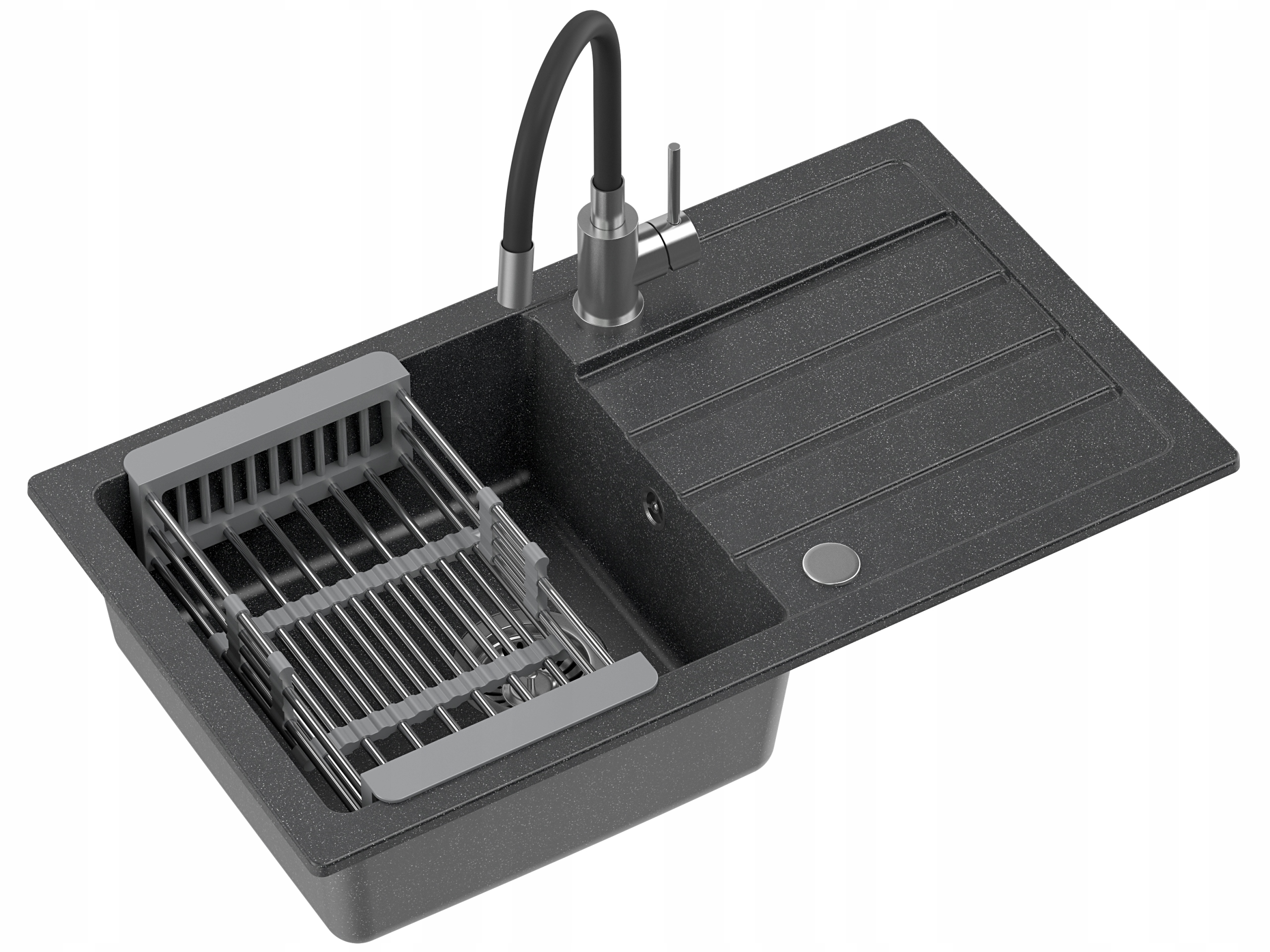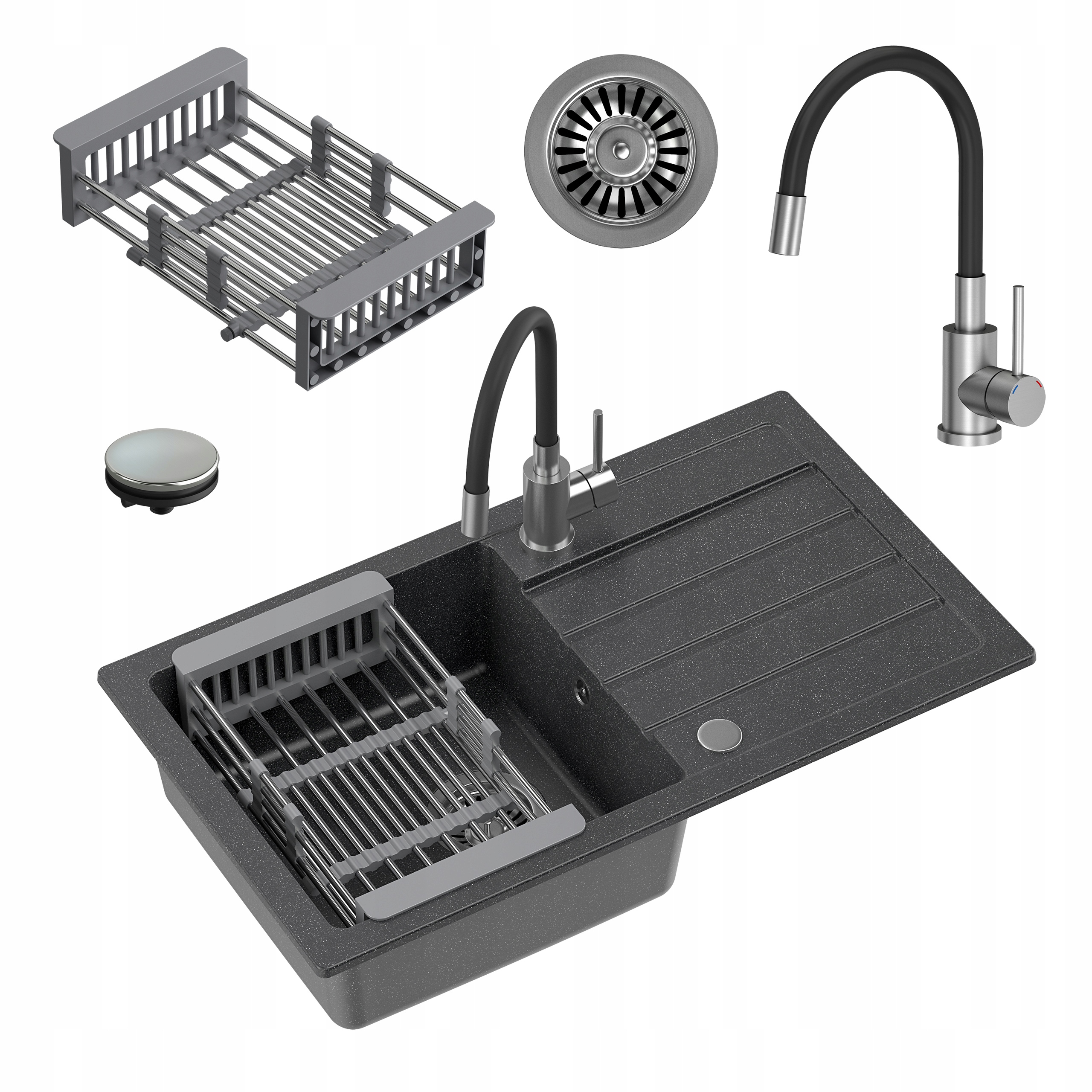 КУХНЯ чорна + змішувач гнучкий + КОШИК