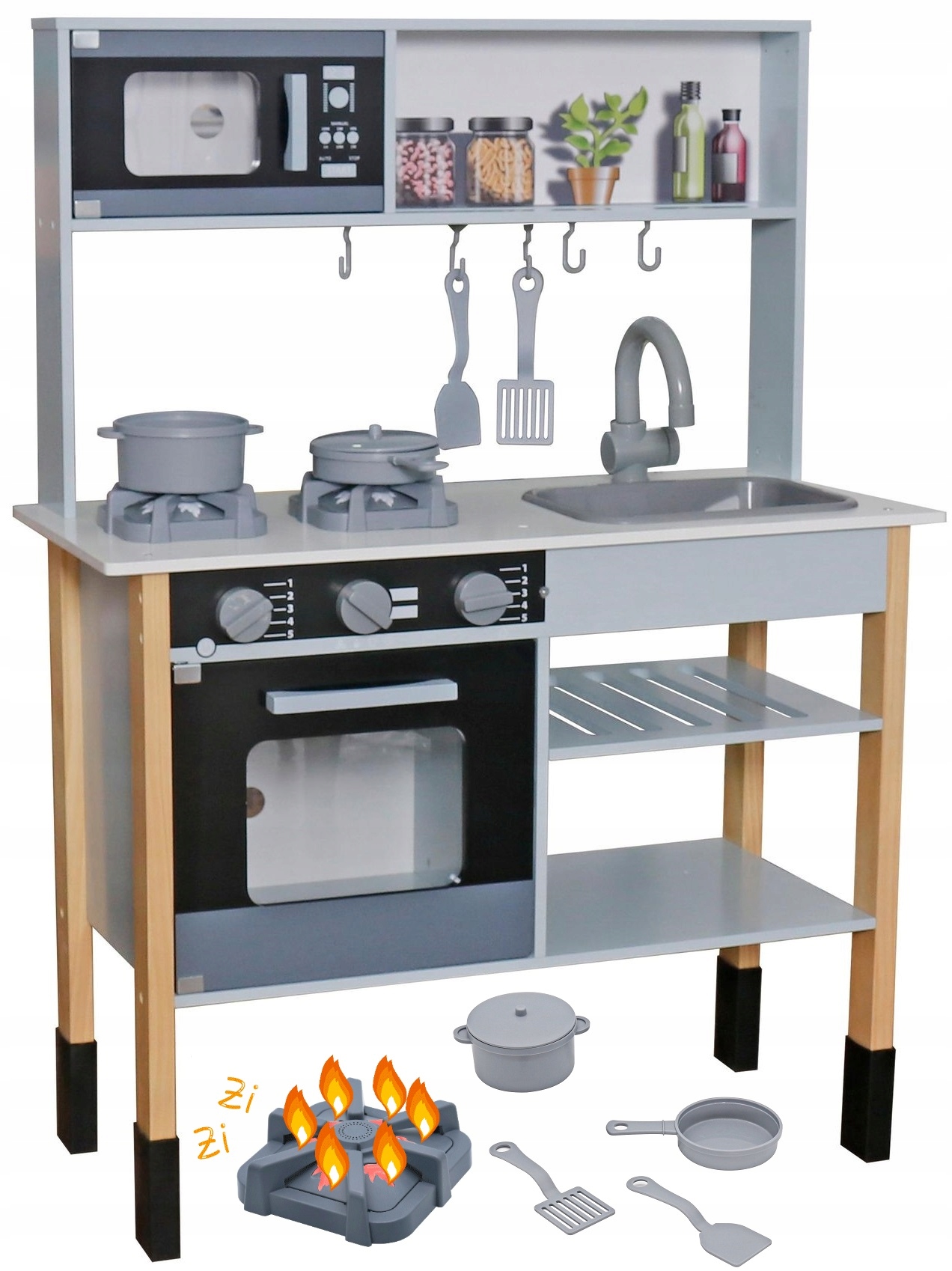 обладнана, красива дерев’яна кухня з аксесуарами, зроблена з великою увагою до кожної деталі, безумовно, сподобається вашій дитині. Сучасний дизайн кольору підходить як для дівчат, так і для хлопчиків. Піч абсолютно безпечна, стабільна і не має гострих країв.