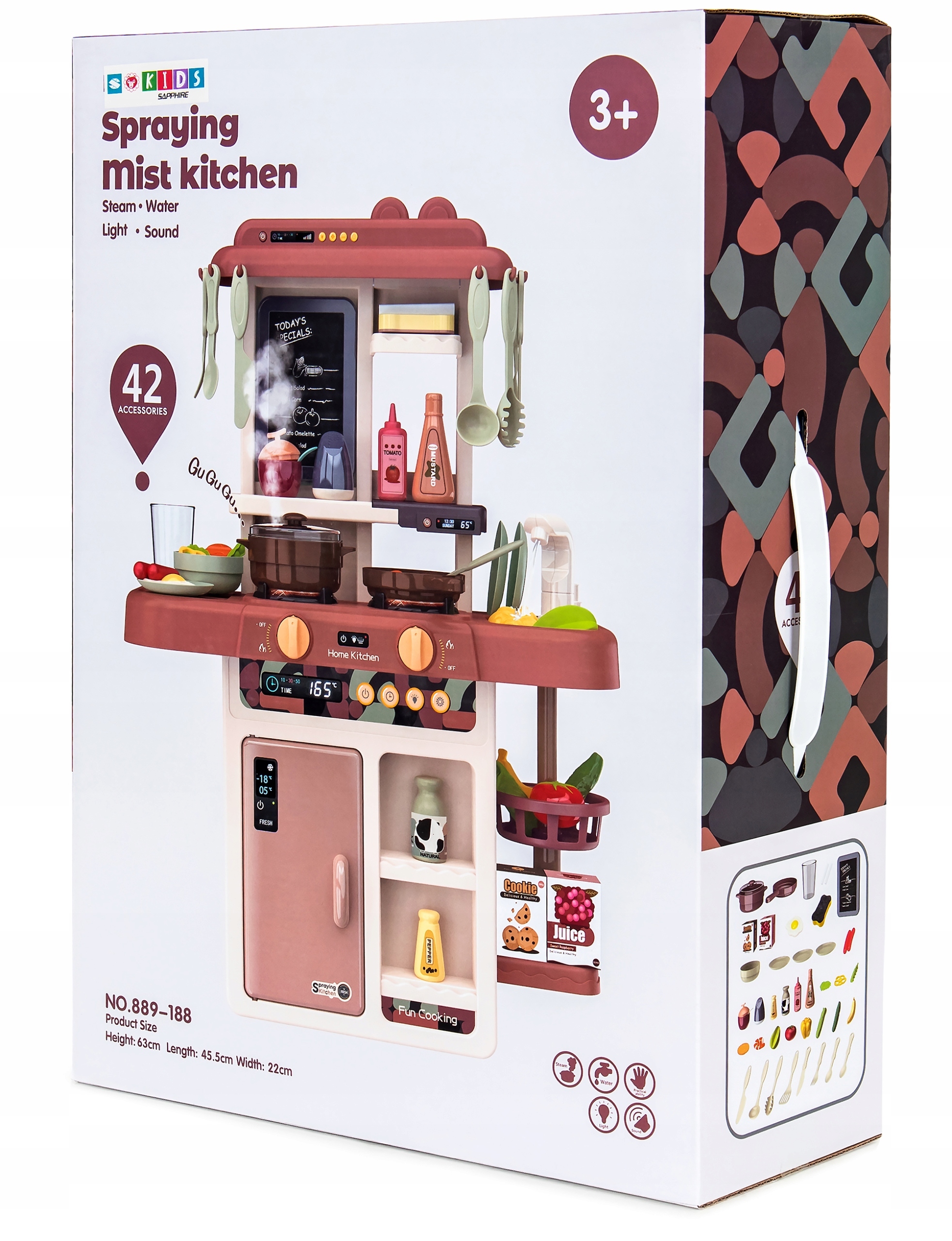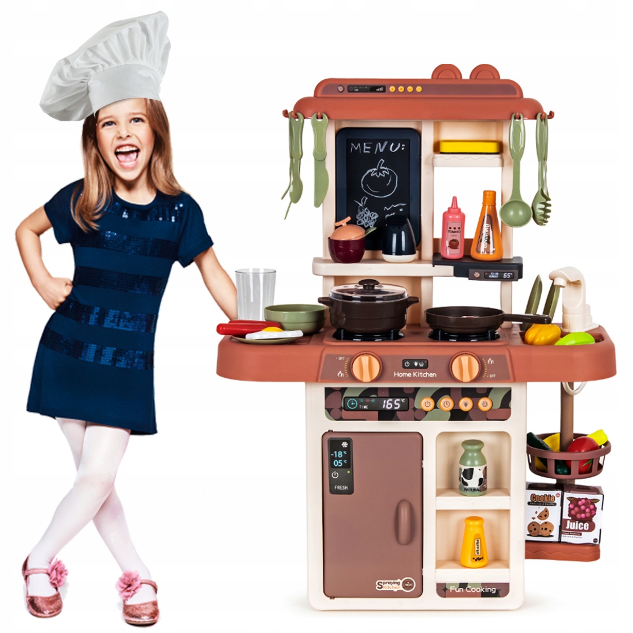 КУХНЯ дитяча СТРІЧКА ПАРА ВОДА ЗВУЧИТЬ СВІТЛО конфорки аксесуари 42 шт.