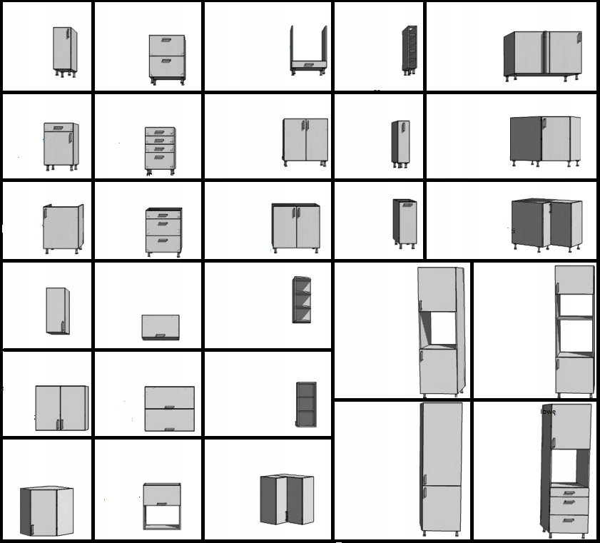 🔸 нижні шафи (15-120 см): кут, вантаж, з полками