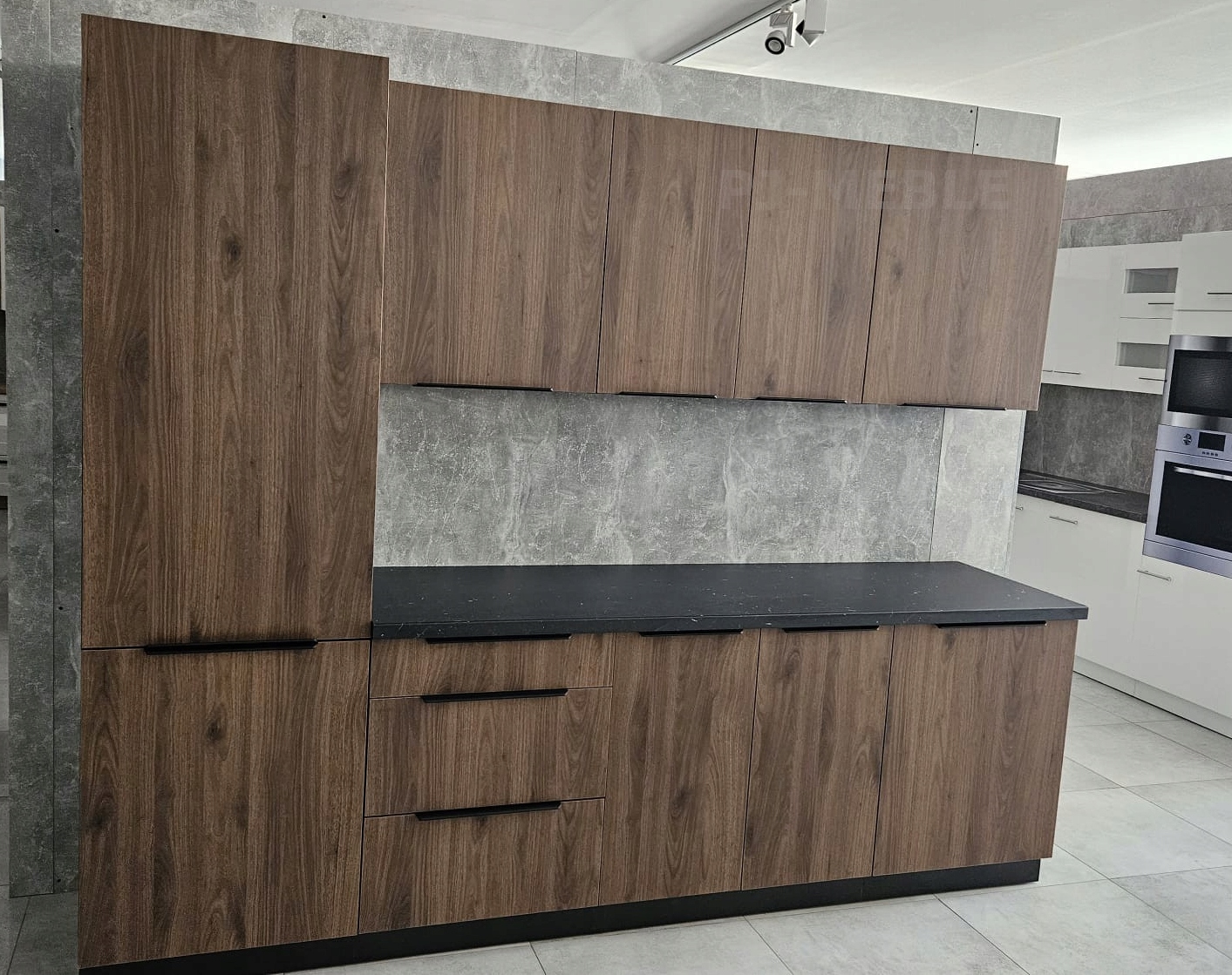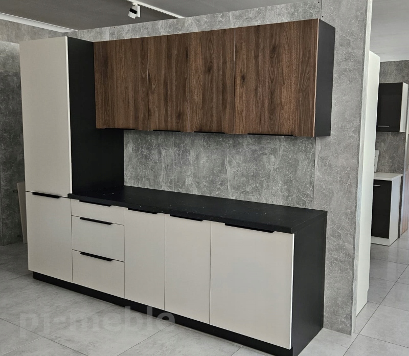 Кухонні меблі Арко-Мона - кольорові; Окапі горіх / кашемір / матовий чорний