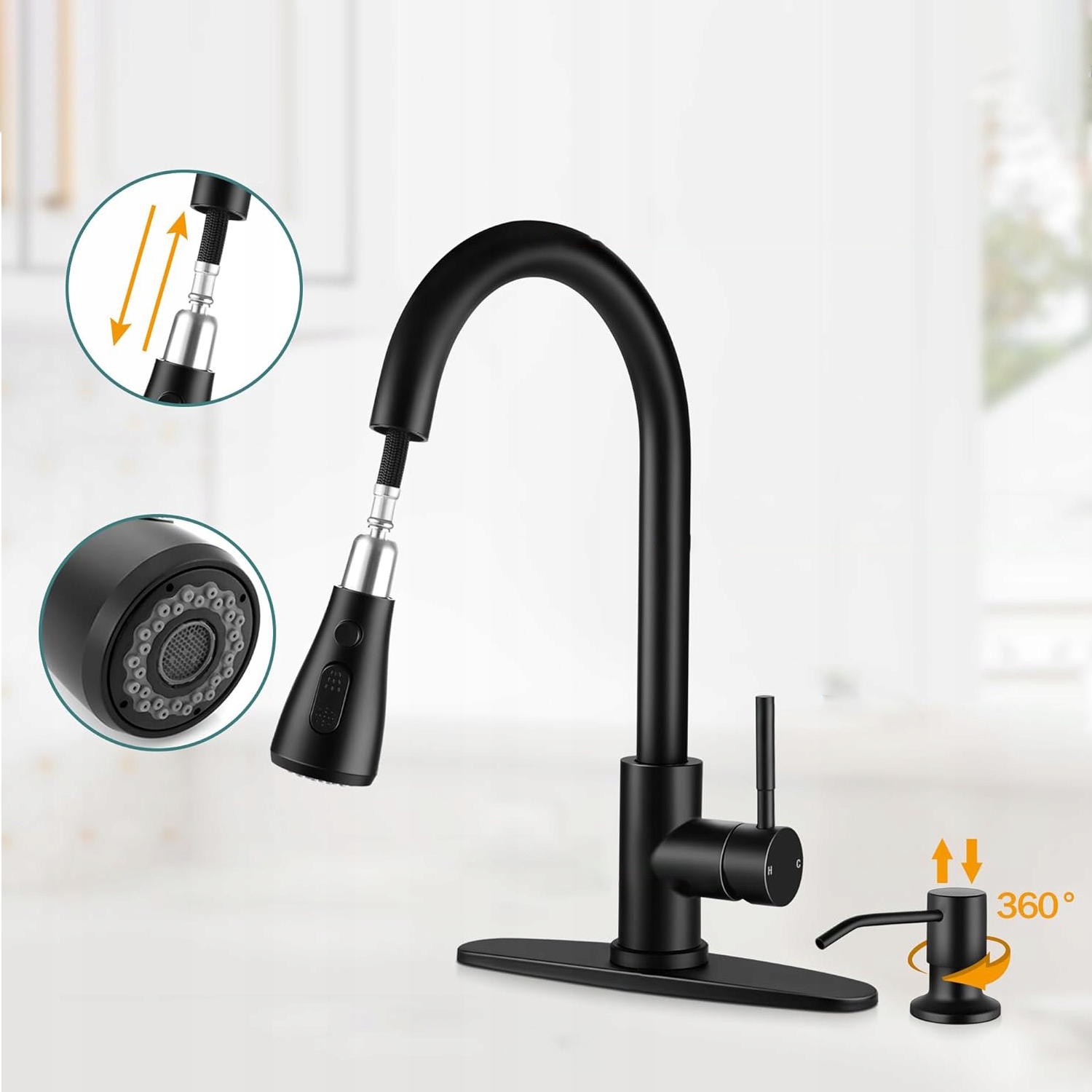 - Дизайн кухонного змішувача робить кухонне приміщення простим і свіжим, його легко підібрати, кухонний змішувач використовує екологічно чисте зручний висувний змішувач для кухні з нержавіючої сталі 304, стійкий до корозії, здорові стічні води, більше та легше, без повторного забруднення.