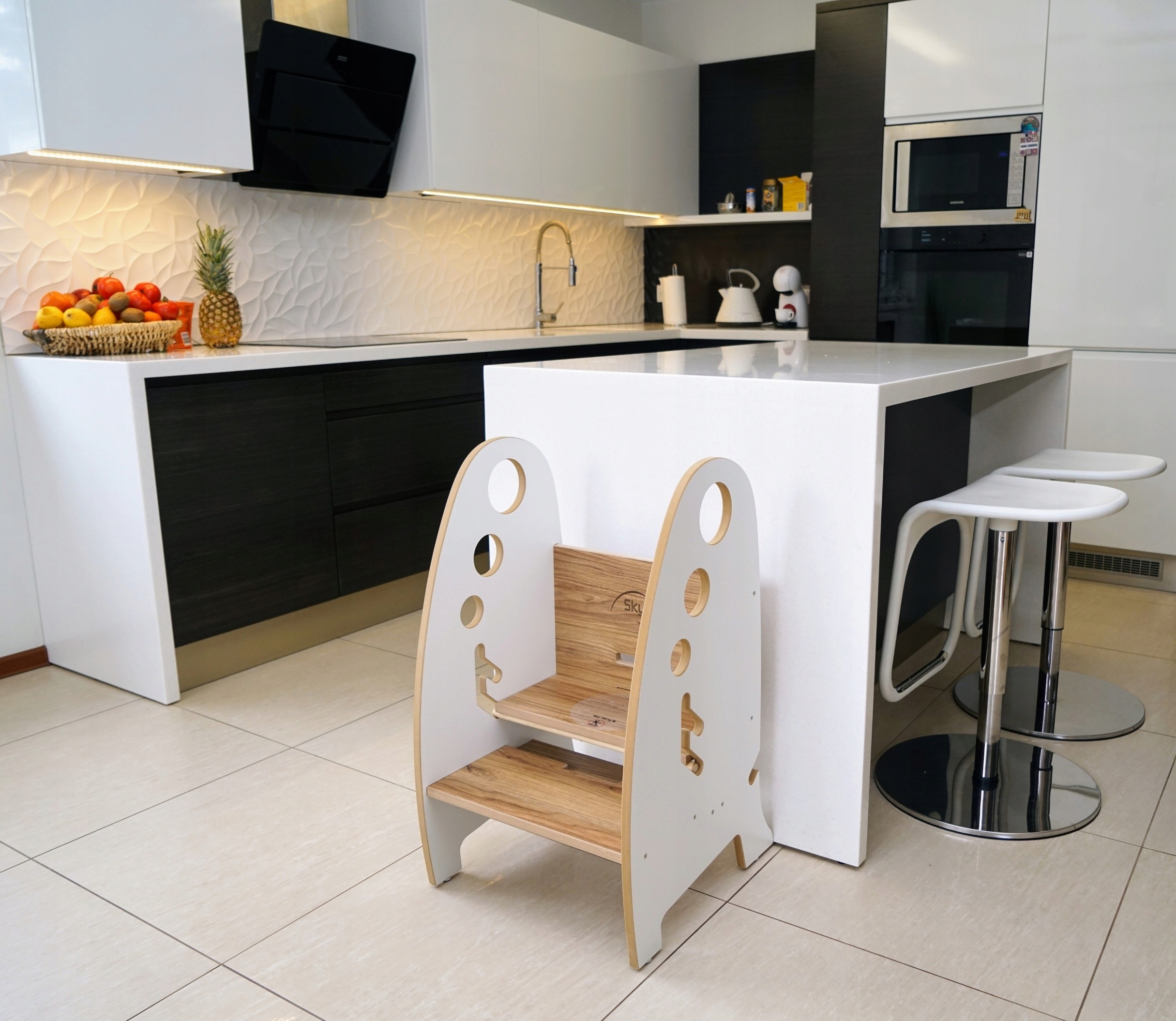 ✨Мрієте про те, щоб ваша дитина могла безпечно допомагати на кухні і водночас хочете мати вдома стильний і практичний предмет меблів, який полегшить ваші щоденні справи? Kitchen Helper - це більше, ніж просто кухонний помічник, платформа або сходинки - це незамінна опора як для дітей, так і для дорослих! Завдяки простому регулюванню висоти платформи з трьома рівнями, помічник росте разом з вашою дитиною, і ви можете використовувати його як елегантну драбинку, щоб дістатися до всього, що недоступне. Сучасний дизайн дозволяє вписатися в будь-який інтер'єр, а швидку трансформацію та функціональність оцінить вся родина!✨