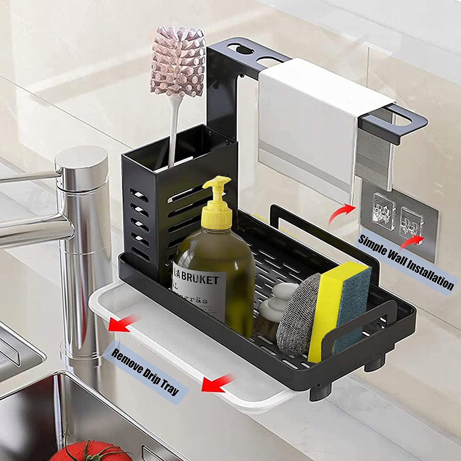 Органайзер виготовлений з високоякісних матеріалів, що гарантує його довговічність і легкість у чищенні. Завдяки своїй багатофункціональності ви можете зберігати не тільки засіб для миття посуду, а й губку та щітку для посуду, що заощадить місце на кухонній стільниці.
