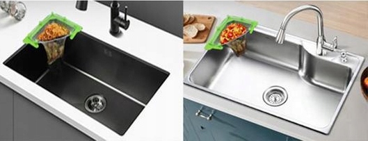 трикутна форма ідеально адаптується до кута раковини, максимізуючи робочий простір та забезпечуючи дискретний та ефективний спосіб зловити залишки їжі. Завдяки цій кухні залишається чистішою та впорядкованішою, ніж будь -коли!