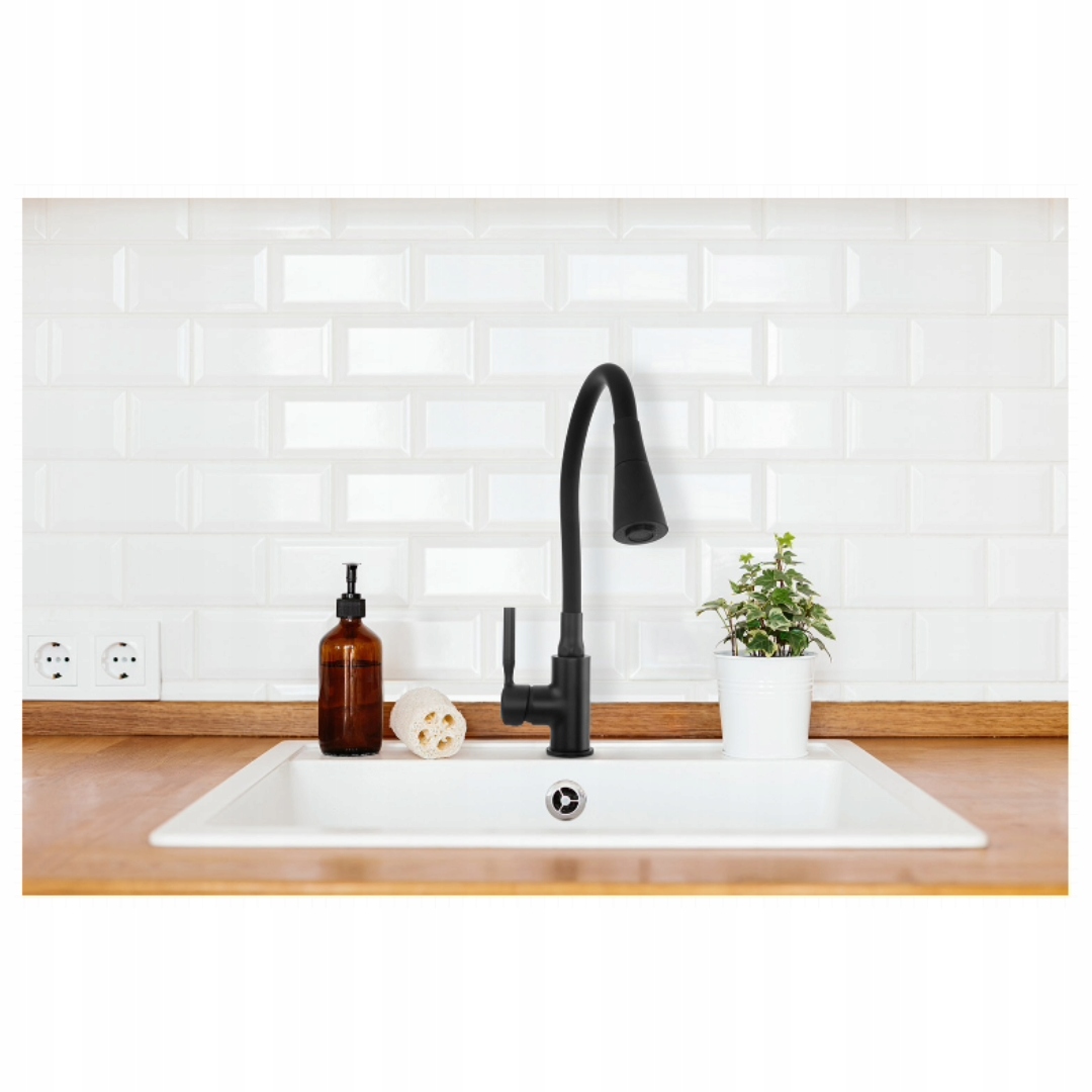 Змішувач для мийки, СТОЯЧИЙ, ГНУЧКИЙ ВИЛИВ, 2 ФУНКЦІЇ, ЧОРНИЙ POGO PLUS INVENA BZ-80-P04-L