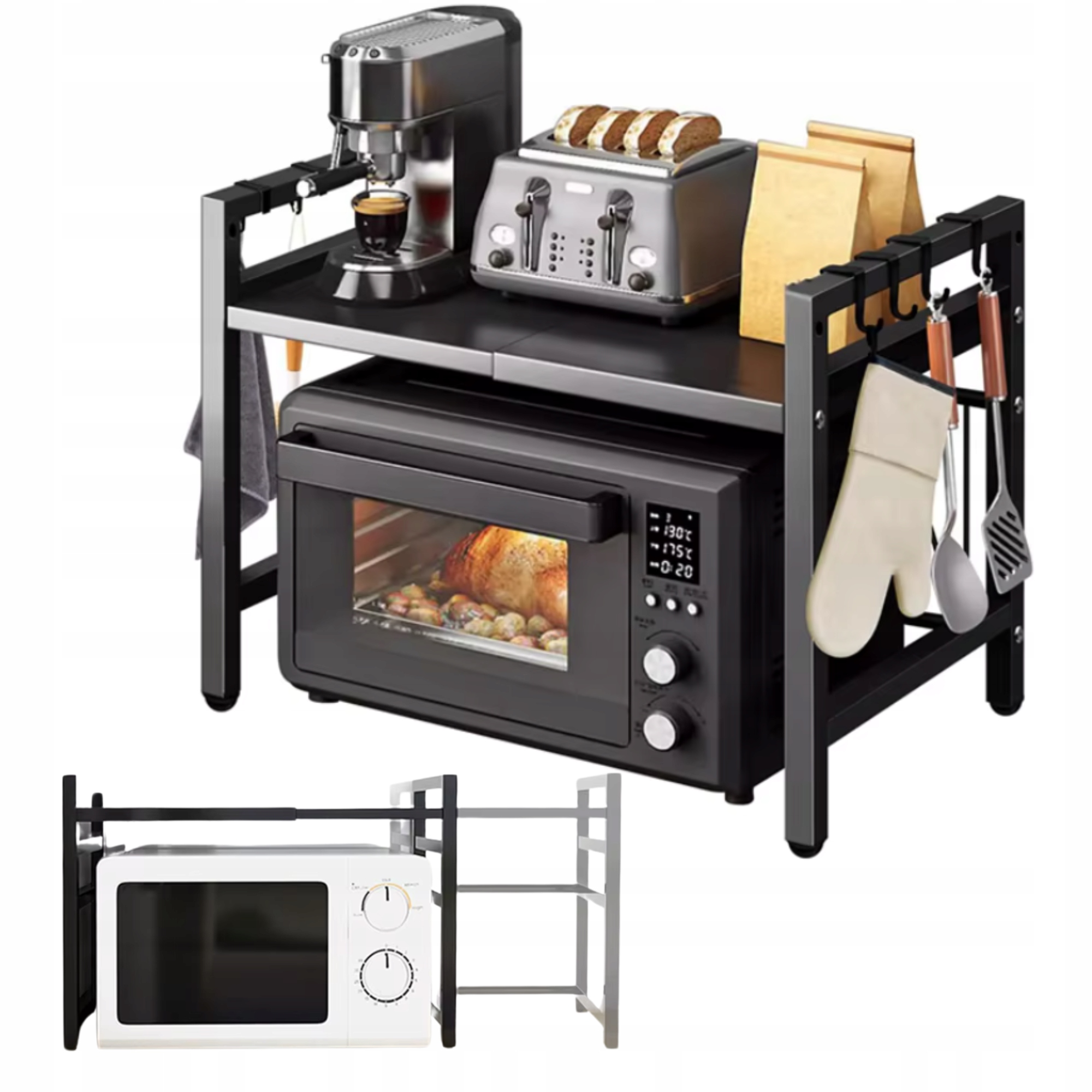 КУХОННА ПОЛИЦЯ ПІДСТАВКА РАМА НАД МІКРОХВИЛЬОВКОЮ ТЕЛЕСКОПІЧНІ ГАЧКИ СТЕЛАЖ