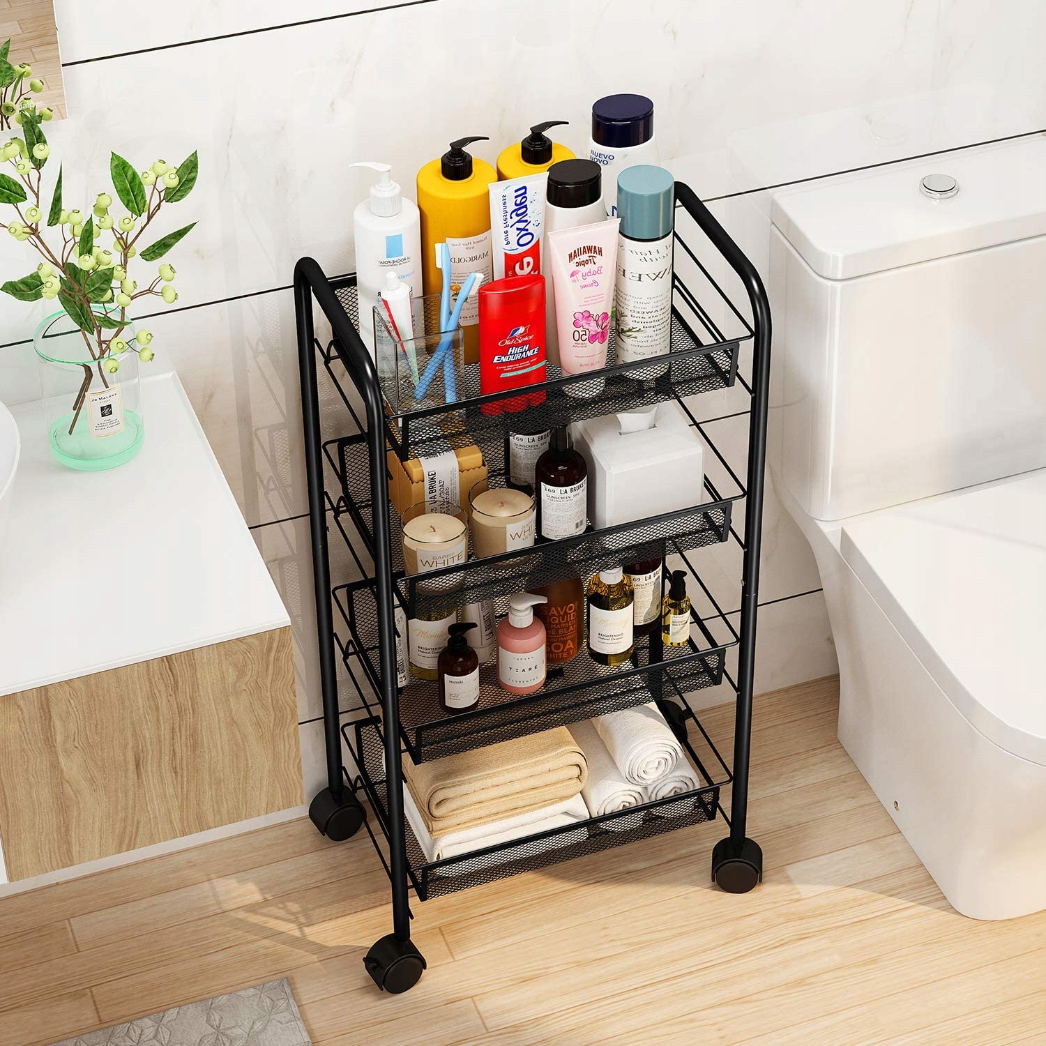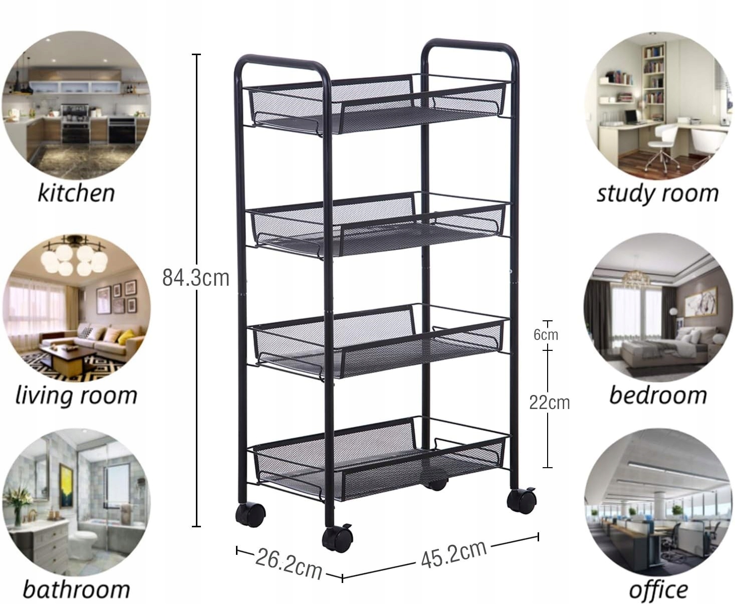 Більше ніякого безладу! Практична чотирирівнева полиця на колесах. Чудово працюватиме як вдома, так і в майстерні. У них можна зберігати речі для кухні та ванної кімнати, а також дрібні аксесуари. Завдяки універсальному дизайну чудово підійде до будь-якого інтер'єру.