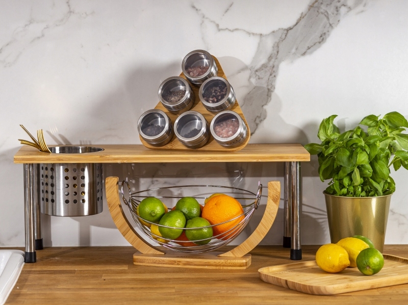 Кухонна полиця з бамбуковими столовими приладами