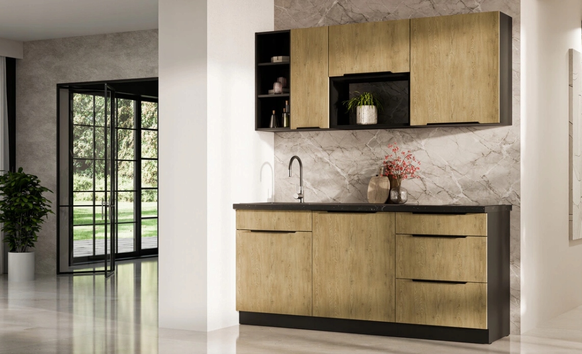 Перелік різних модулів - від функціональних постів до елегантних сайтів - дає майже необмежені можливості домовленості. The fronts in the shade of the "Cremona oak introduce warmth and modern elegance to the interior, and the possibility of choosing the color of the body - black, white - allows you to match the building to the nature of the space, colors and lighting. While the black body brings out the depth of wooden fronts and adds an elegant contrast, white brightens the buildings, giving it lightness, while anthracite introduces Сучасна елегантність, ідеально підходить до промислових композицій.