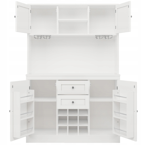 Кухонна шафа з регульованими полицями та винною стійкою, висока шафа-буфет для кухні з 4 дверцятами та 2 ящиками, тумба для кухні та вітальні, буфетна шафа, біла