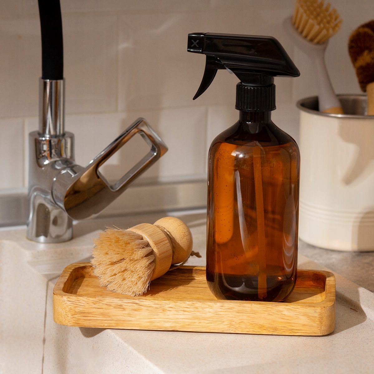 100% натуральна дерев’яна ручка, що піддається компостуванню, і щетина з волокна сизалю дозволять вам ефективно видалити харчові та стійкі плями з посуду та одягу.