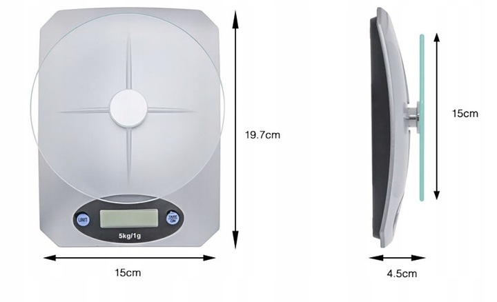 - Розміри ваги : 19,7 х 15 х 4,5 см (діаметр)