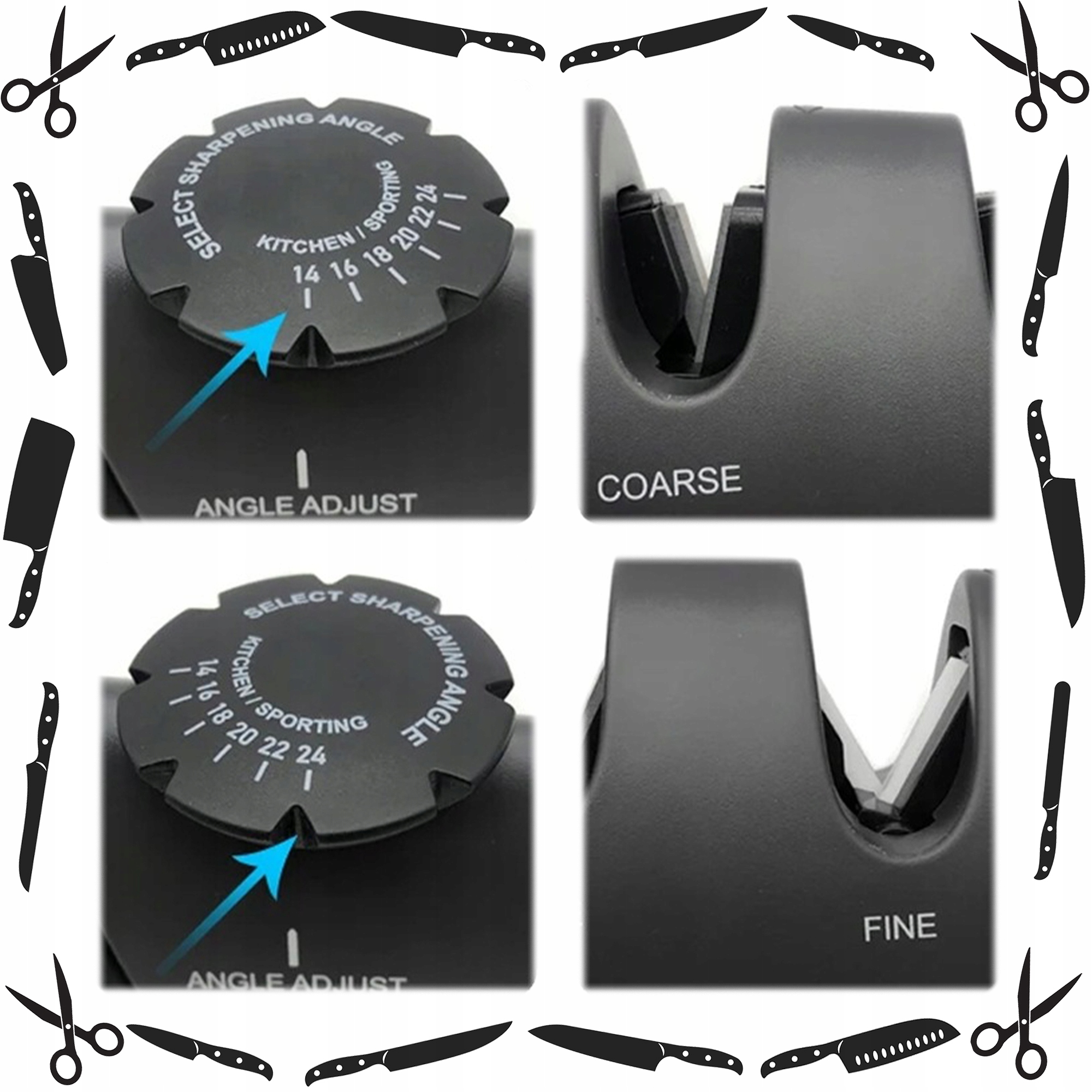 ⚙ Отже, ви можете відрегулювати заточення до будь -якого типу ножа - від цих до точного різання до ножів до ножів до ножів м'яса .