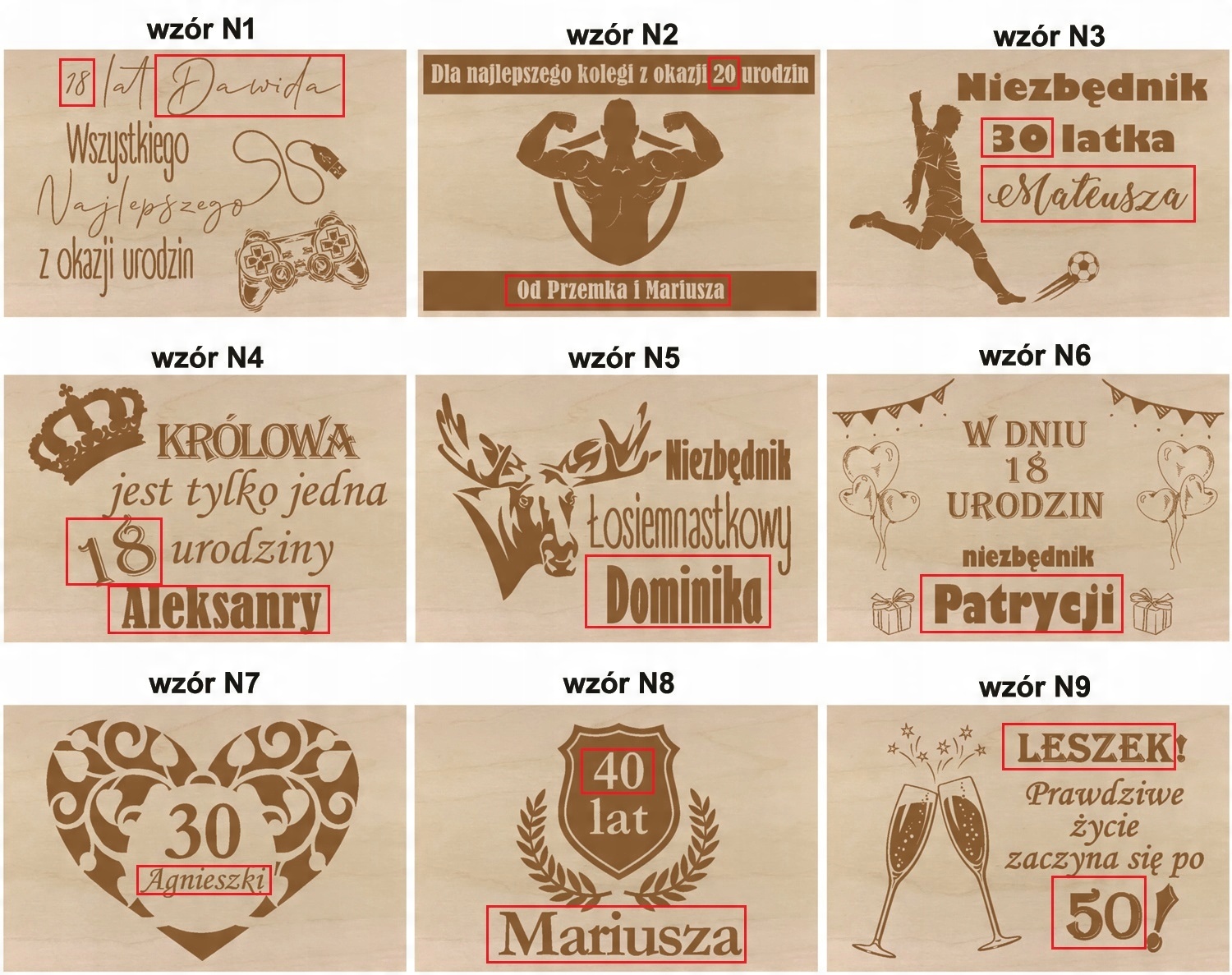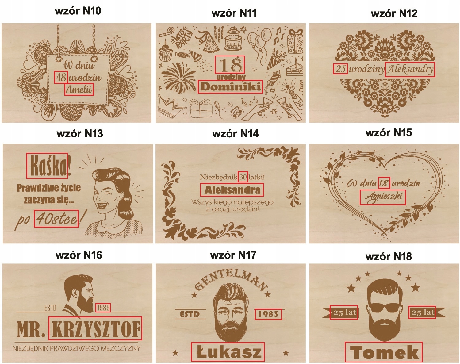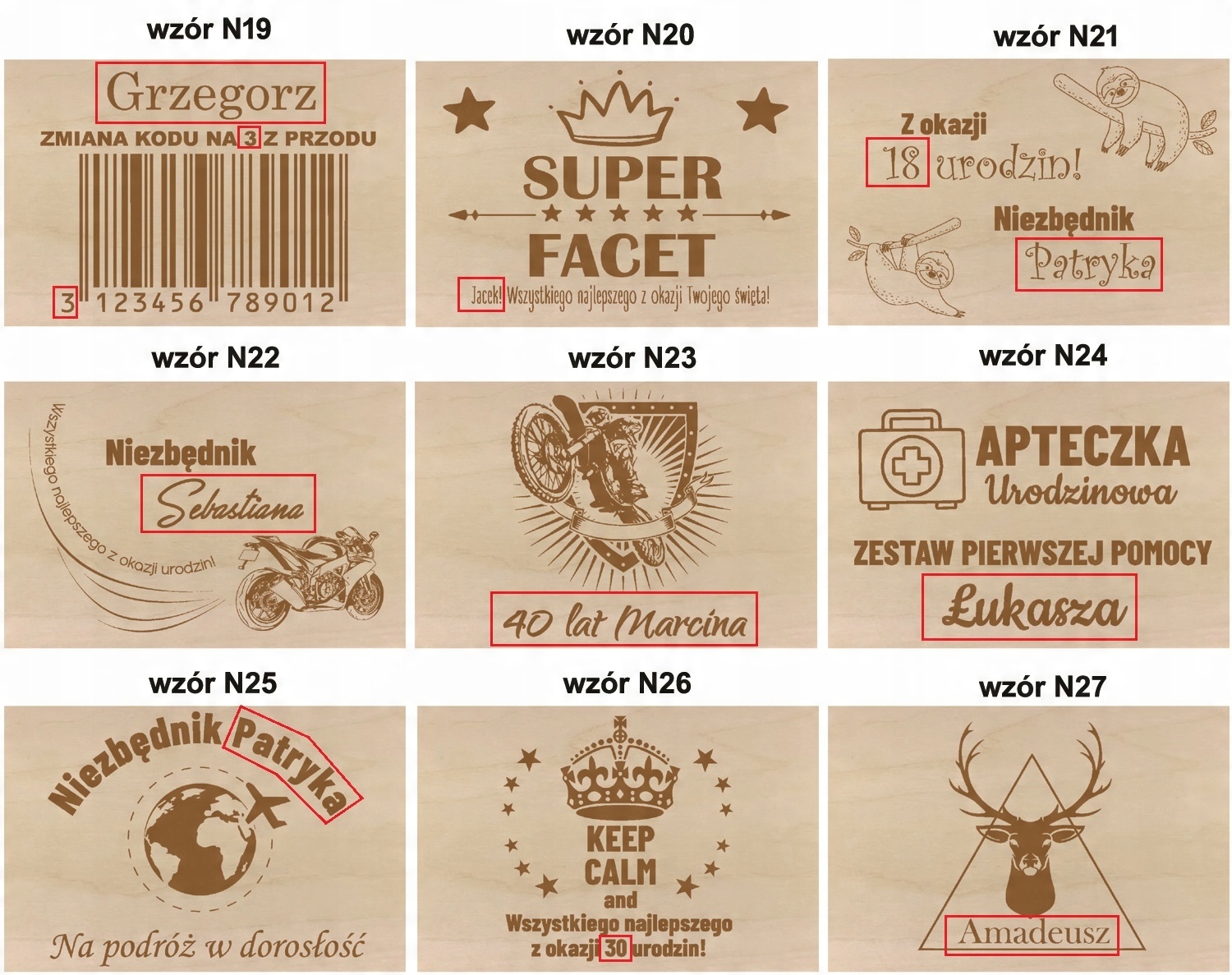 Кришка коробки прикрашена гравіюваннямз іменем/віком одержувача.