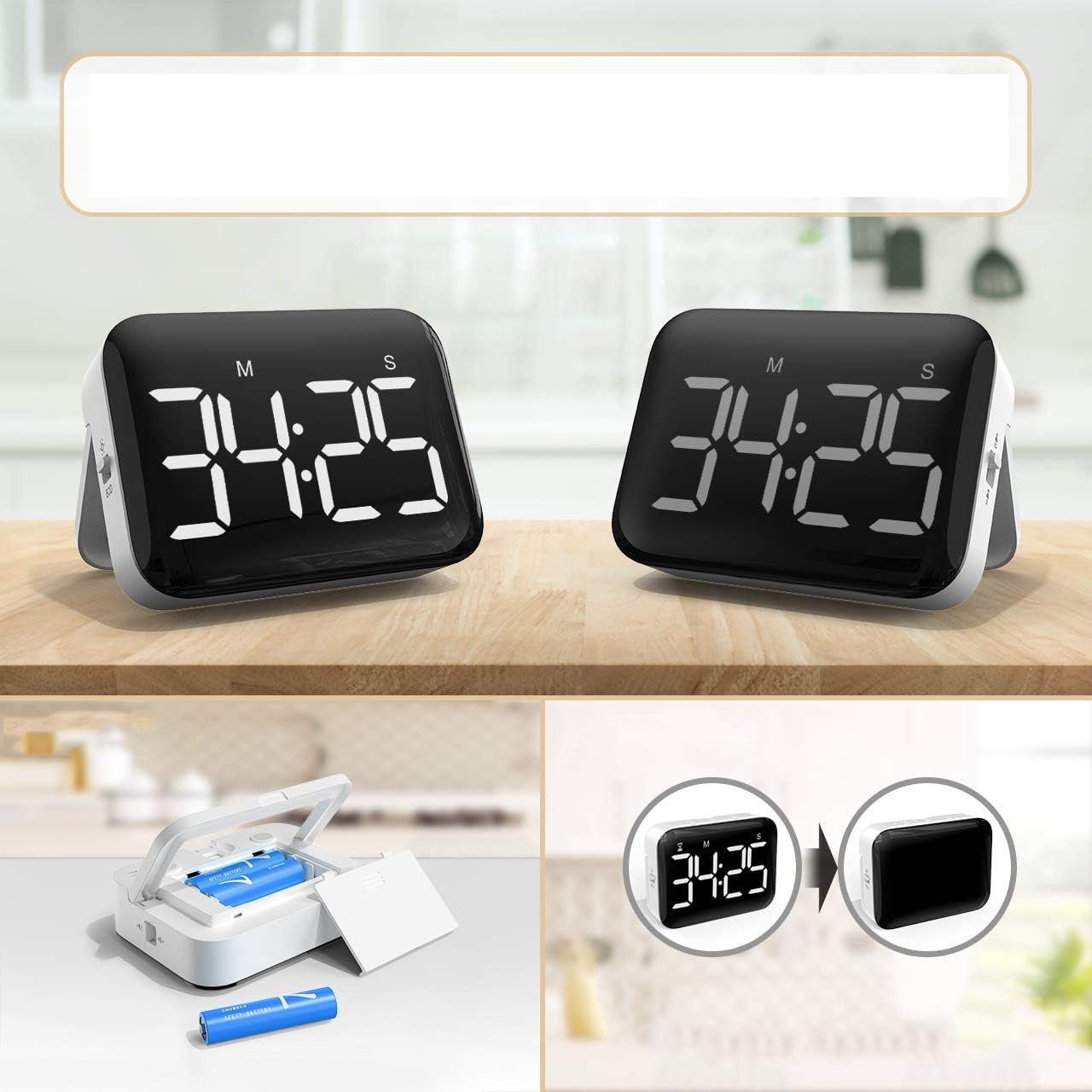 ⭐2 режими яскравості та енергозбереження : великі білі числа з висотою 3,3 см темряви. У режимі паузи/зупинки дисплей таймера автоматично вимикається, якщо операції не виконується протягом 5 секунд, зберігаючи страхи, які ви можете забути вимкнути. Просто натисніть будь -яку кнопку вгорі, щоб знову її активувати.