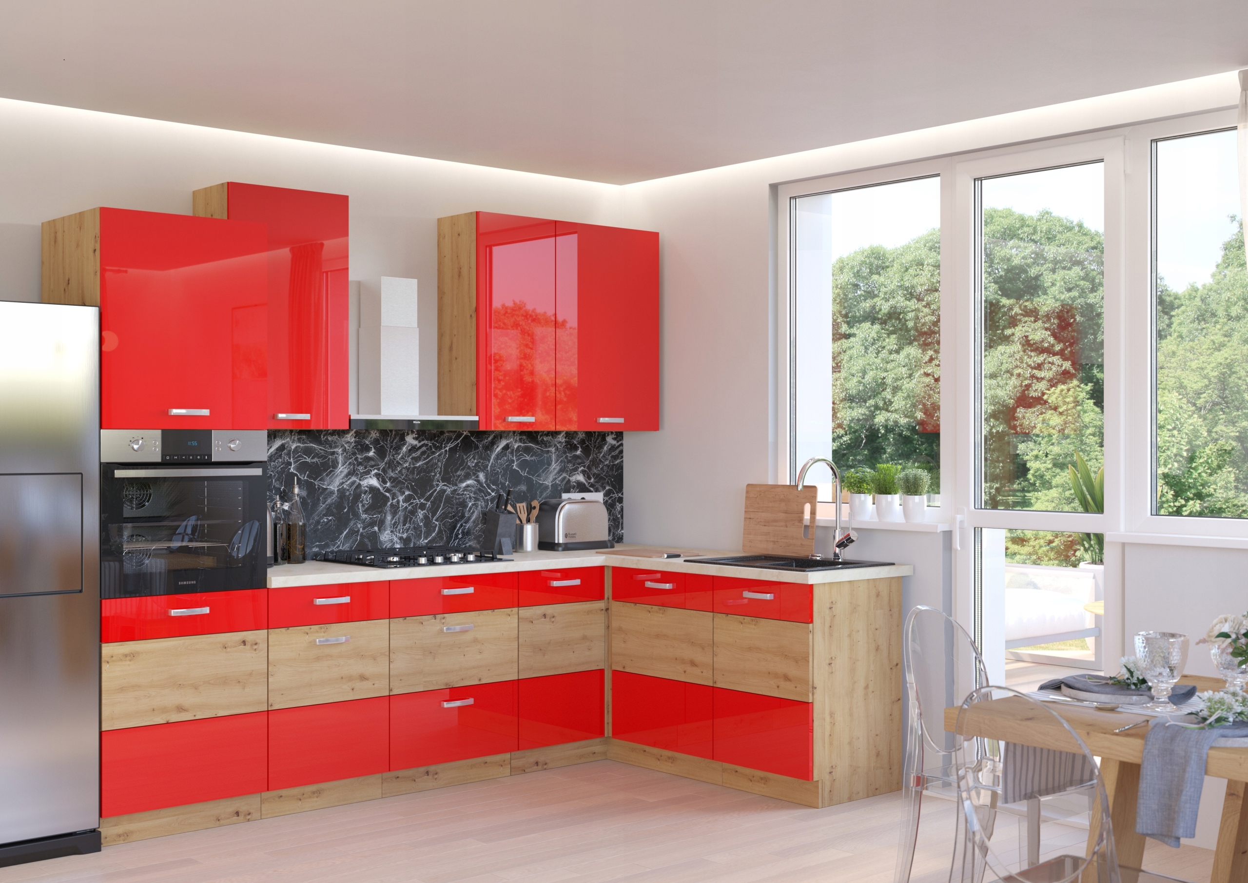 кухню Artisan в білому глянці / дубі artisan
