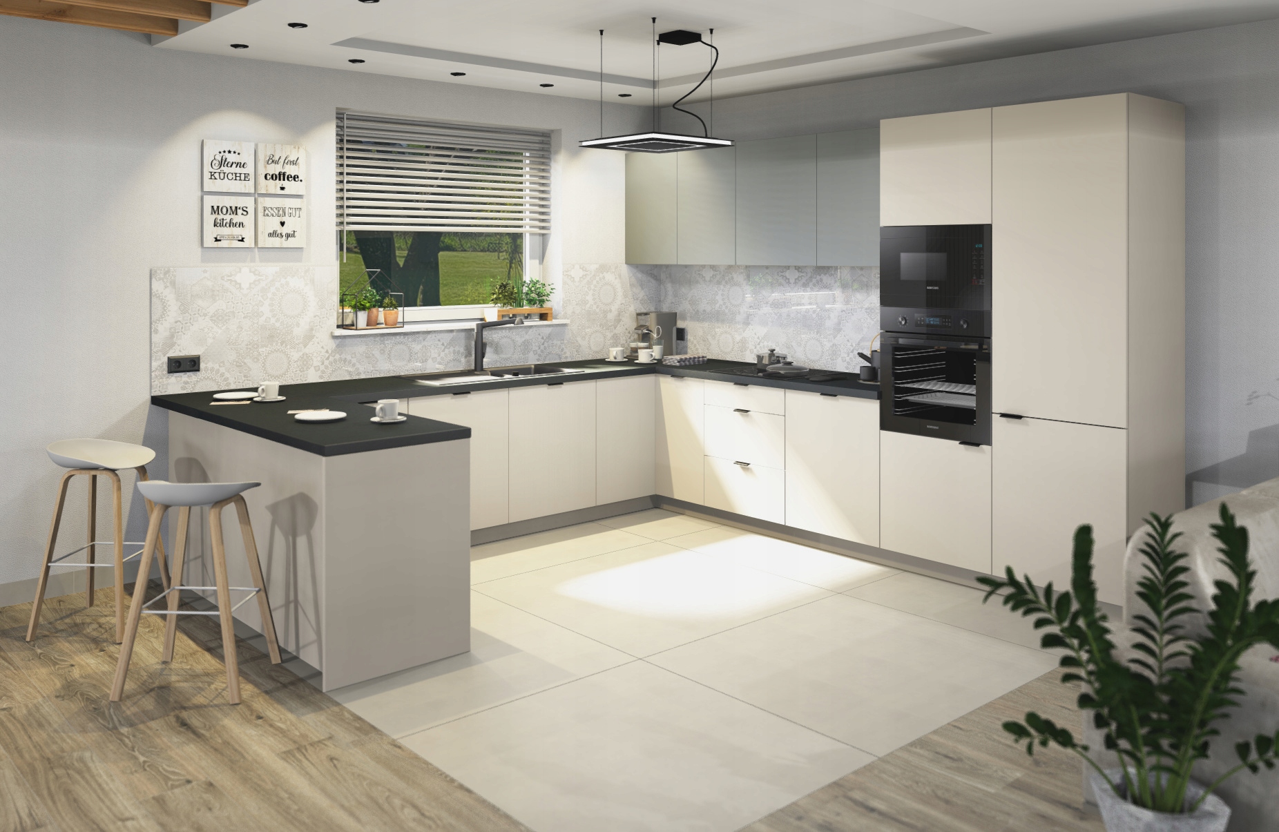 • - колір фасадів нижніх шаф: матовий (, ПВХ),