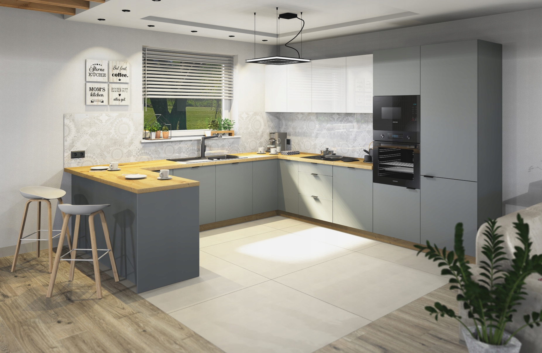 • - Колір фасадів верхніх шаф: матовий (ПВХ),
