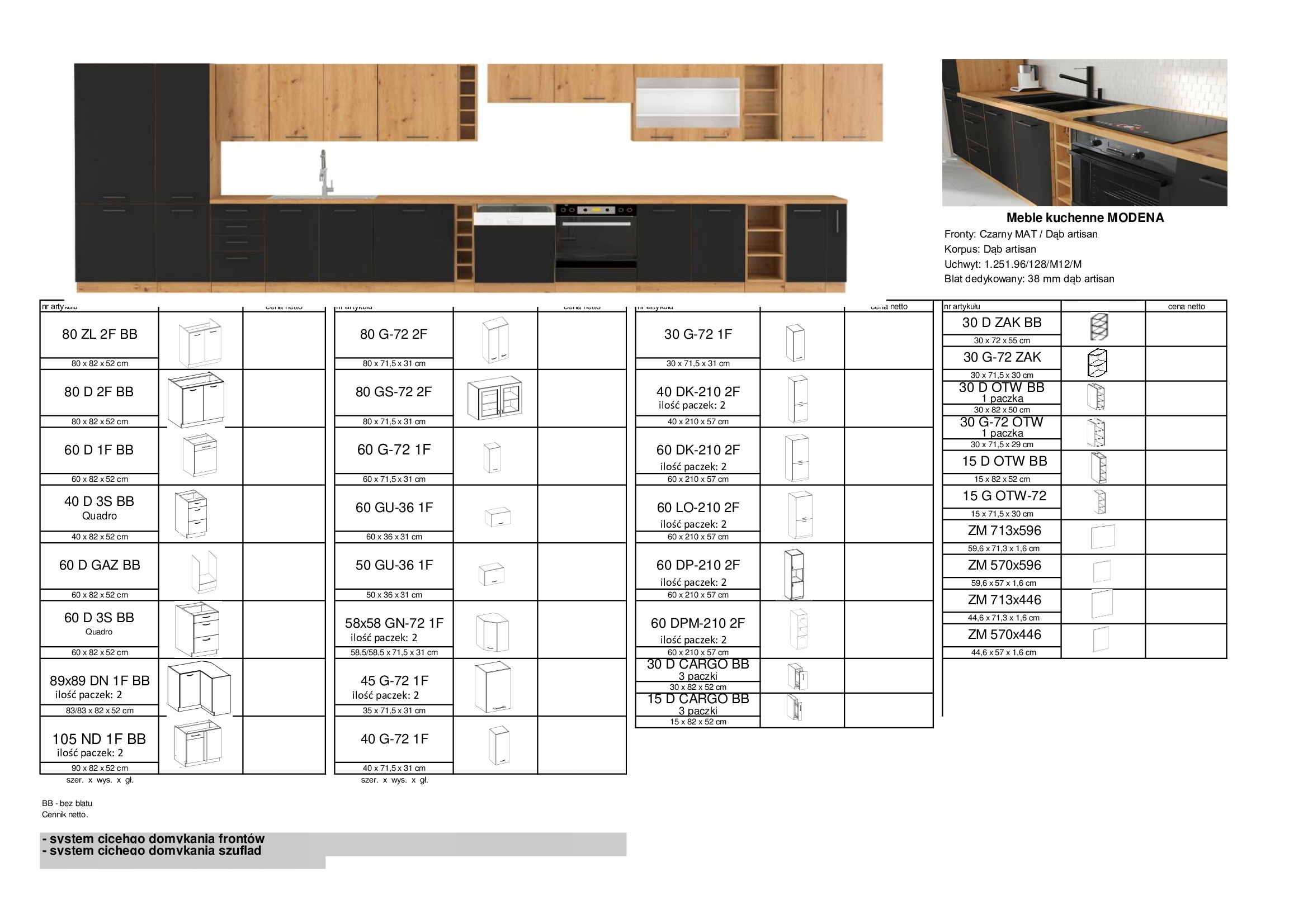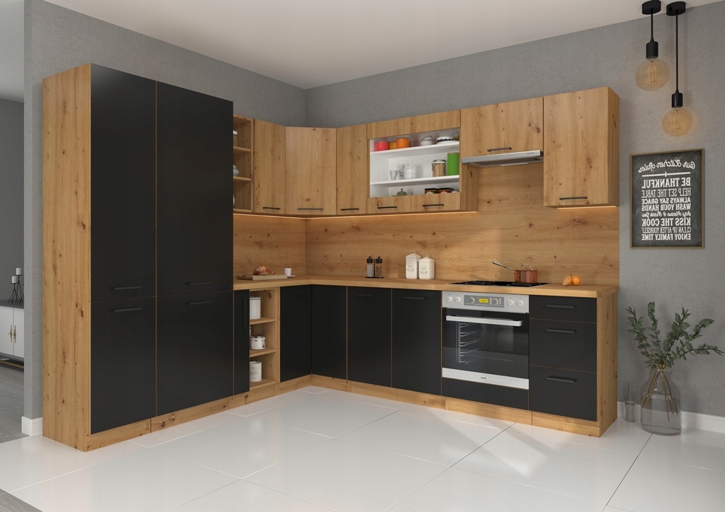 Кухонний набір MODENA 180 см: ЧОРНИЙ/ ДУБ ARTISAN МАТОВИЙ