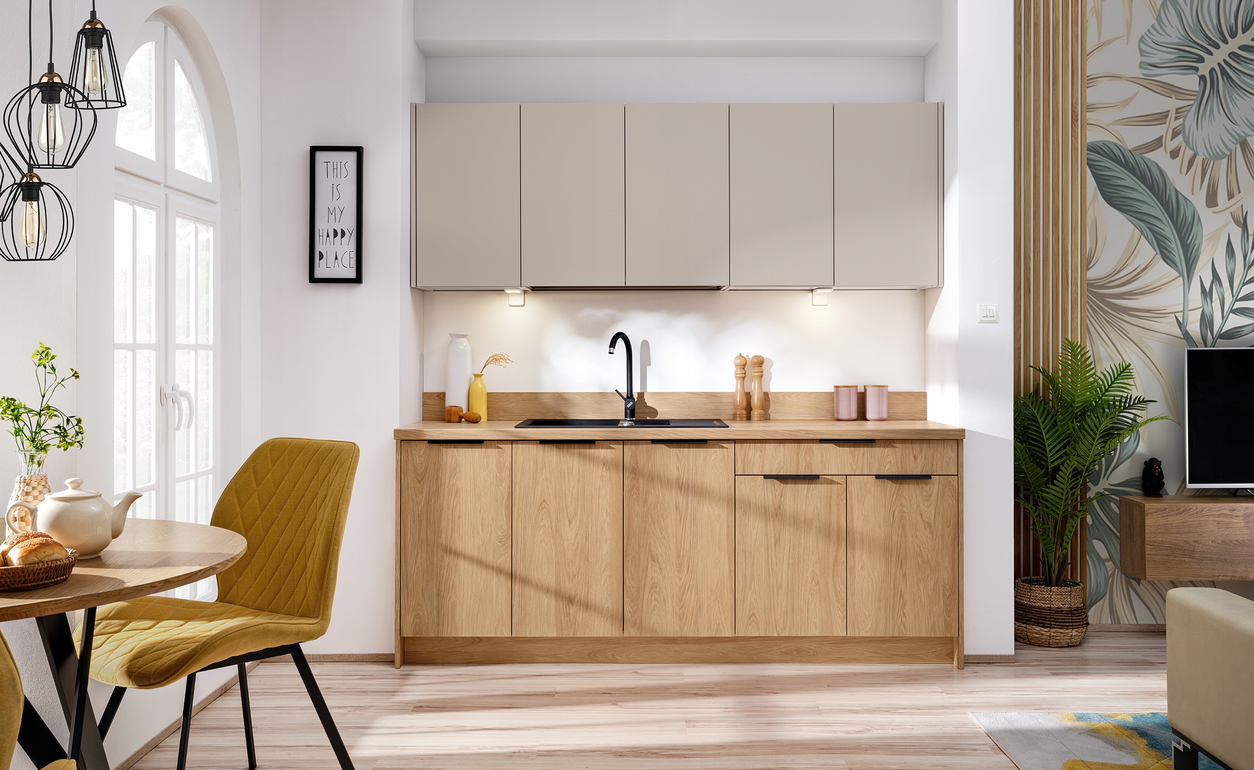Колекція Novo - це сучасні кухонні меблі, які радують не лише їх унікальним дизайном, але й практичністю та функціональністю. Система меблів Novo доступна в трьох кольорах , що дозволяє відповідати різним стилям і смакам. Виразні Металеві чорні ручки Додайте витонченість до меблів, вводячи на кухню теплу та приємну атмосферу. Комплект включає, серед інших, шафи з ящиками, кутовими шафами, підвісними шафами та безкоштовними меблями меблів, посудомийною машиною та холодильником. Такі різноманітні елементи забезпечують не тільки естетику, але й максимальну функціональність , відповідаючи очікуванням навіть найвибагливіших користувачів.