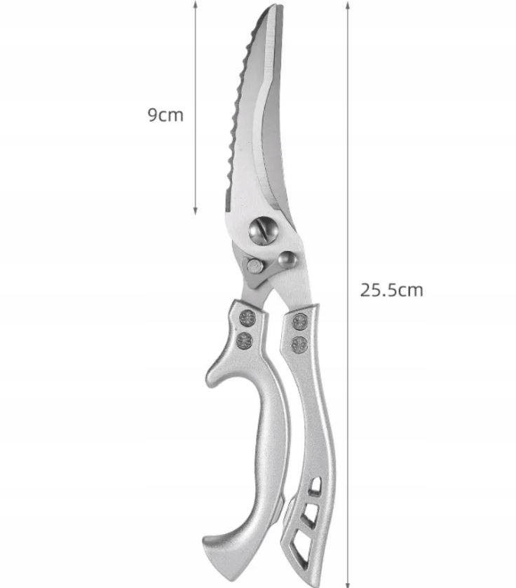 Кухонні ножиці були виготовлені з високої якості нержавіючої сталі, що гарантує стійкість до корозії та довговічної міцності. Лопатки різкі та ефективні , що дозволяє точно вирізати різні типи м'яса, птиці та риби. Суцільний дизайн цього продукту робить його надійним супутником на кухні.