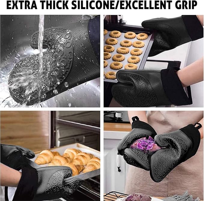 ✨ Захистіть руки класом! Цей набір з 2 силіконових кухонних рукавичок є не лише ефективним захистом від високої температури, але й елегантним доповненням до вашої кухні. Рукавички призначені для функціональності та комфорту - вони будуть ідеальними для випічки, приготування їжі та грилю.