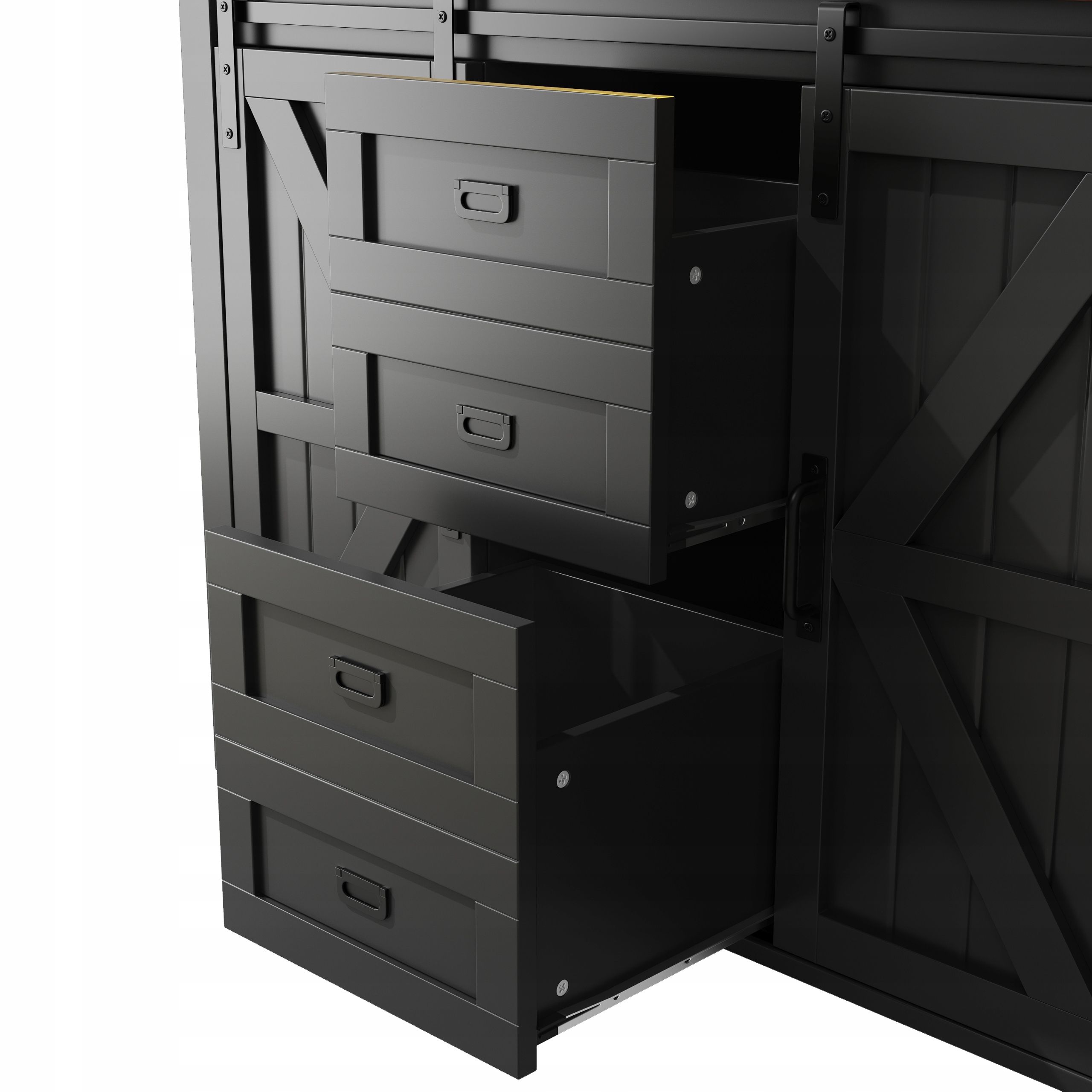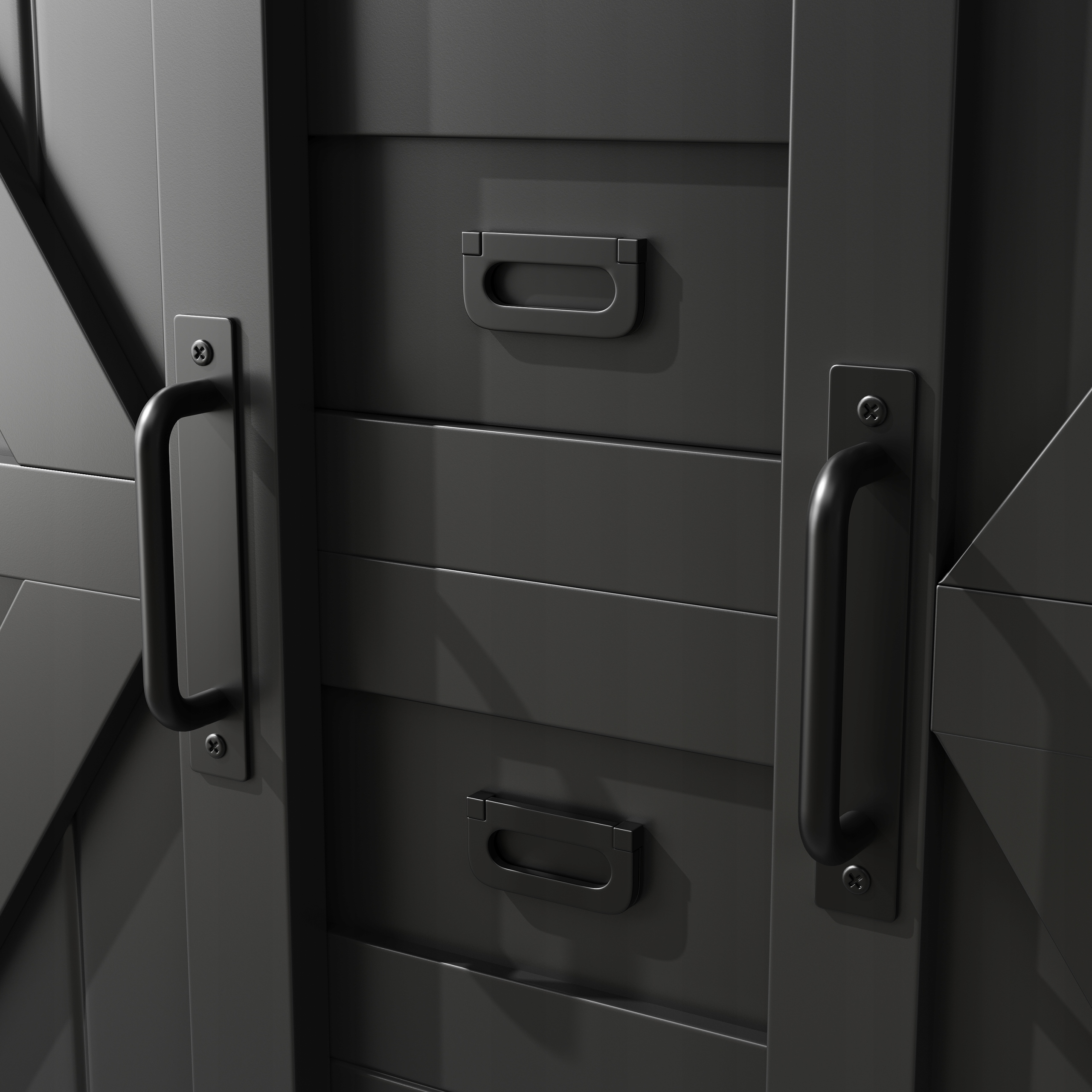 - Шафа має повністю чорне покриття, яке випромінює вінтажну елегантність. Його Х-подібні дверцята одночасно естетичні та привертають увагу. Все виглядає ретро-сучасно і водночас освіжаюче, що вписується в різні стилі інтер'єру. Це ідеальне доповнення до вашого комфортного житлового простору.