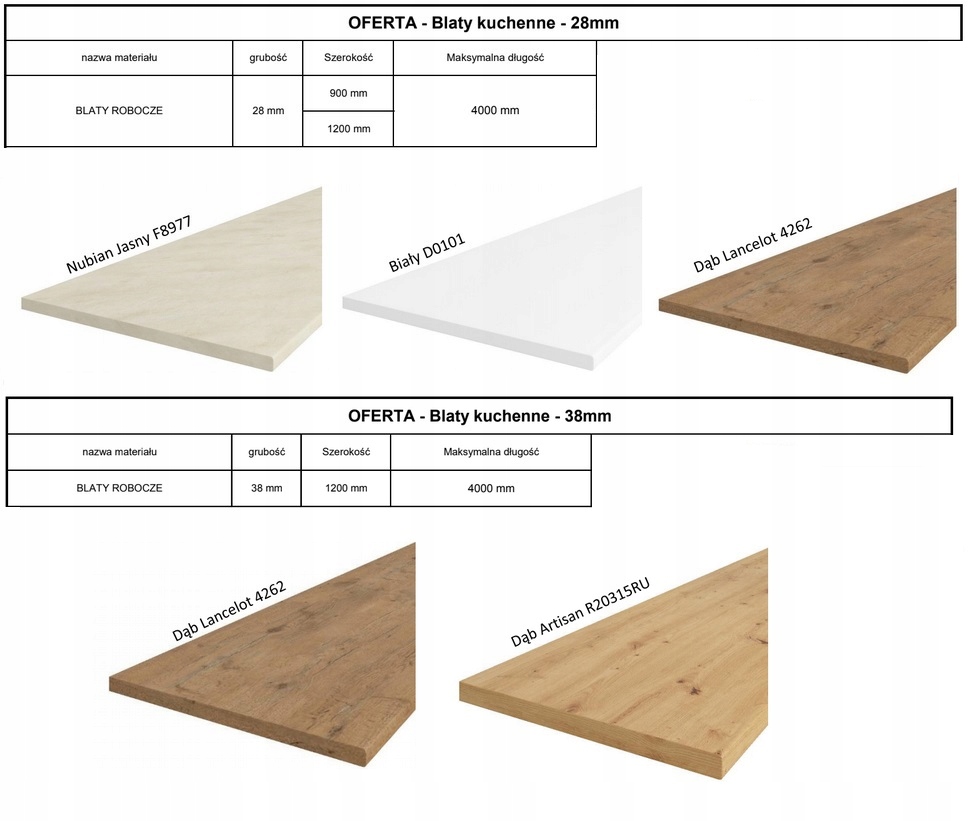 - Стільниця на фотографіях: 38 мм Дуб Артизан