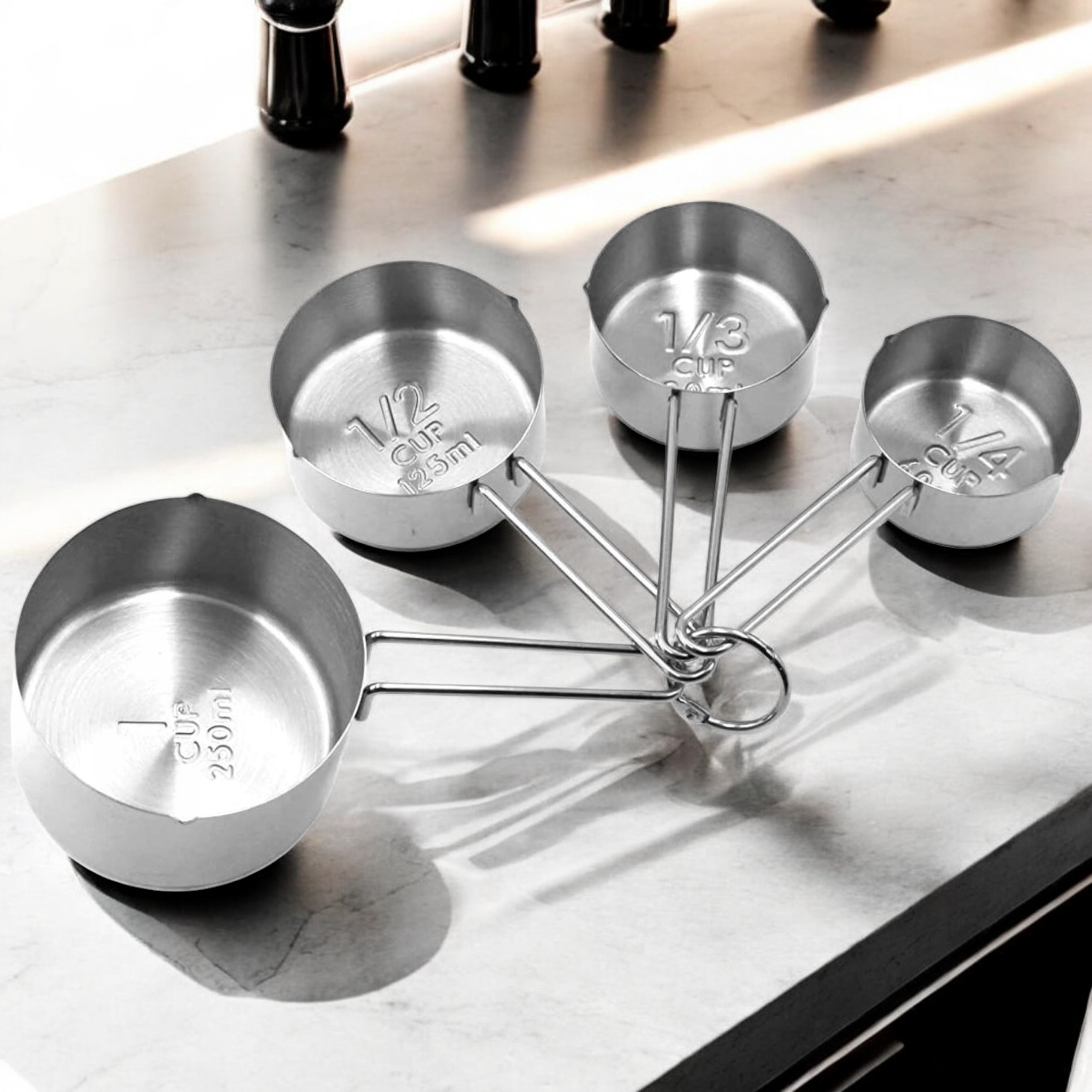 Завдяки різним розмірам заходи дозволяють точно вимірювати сухі та рідкі інгредієнти - вам більше не потрібно здогадуватися! Масла.
