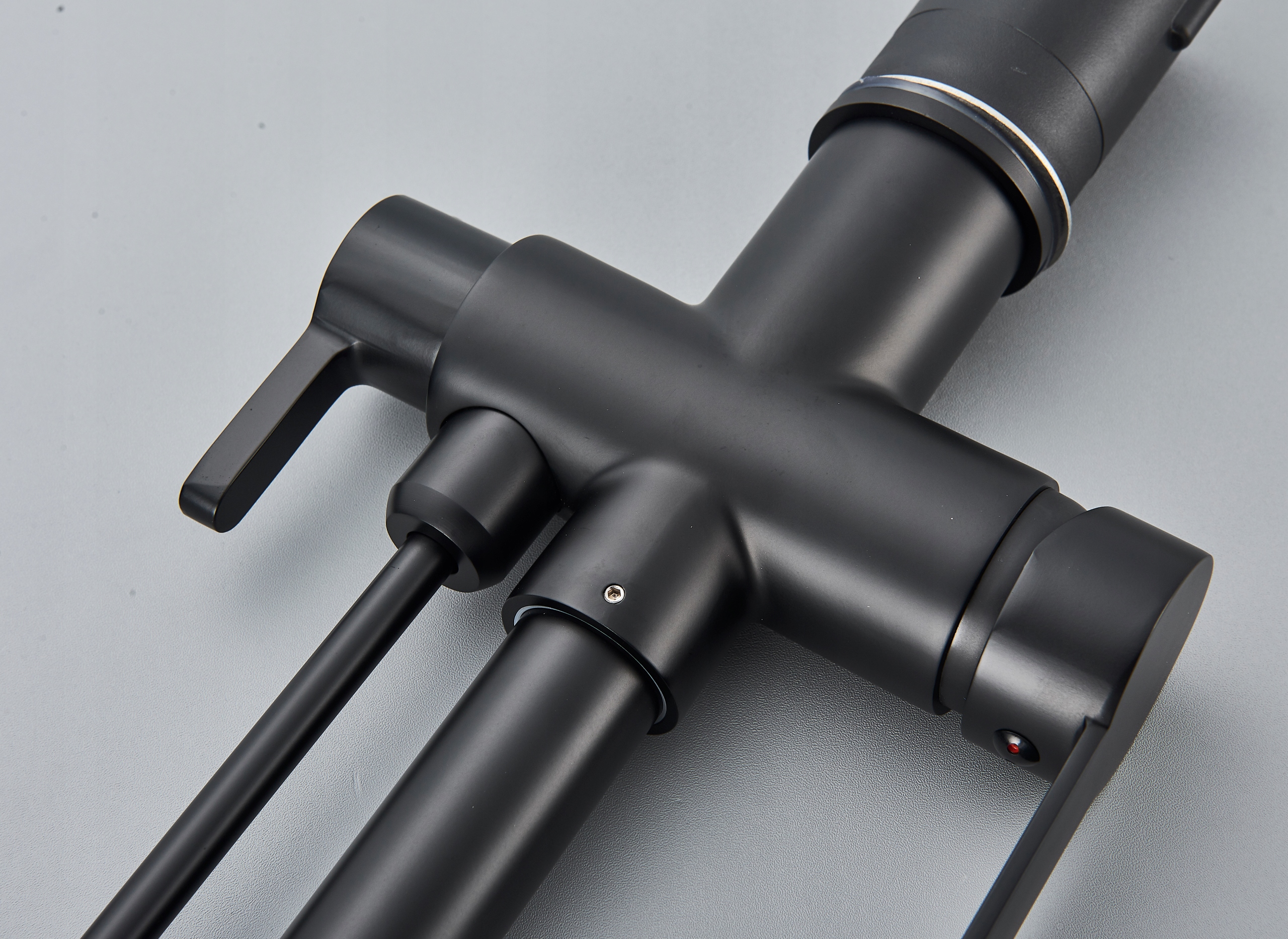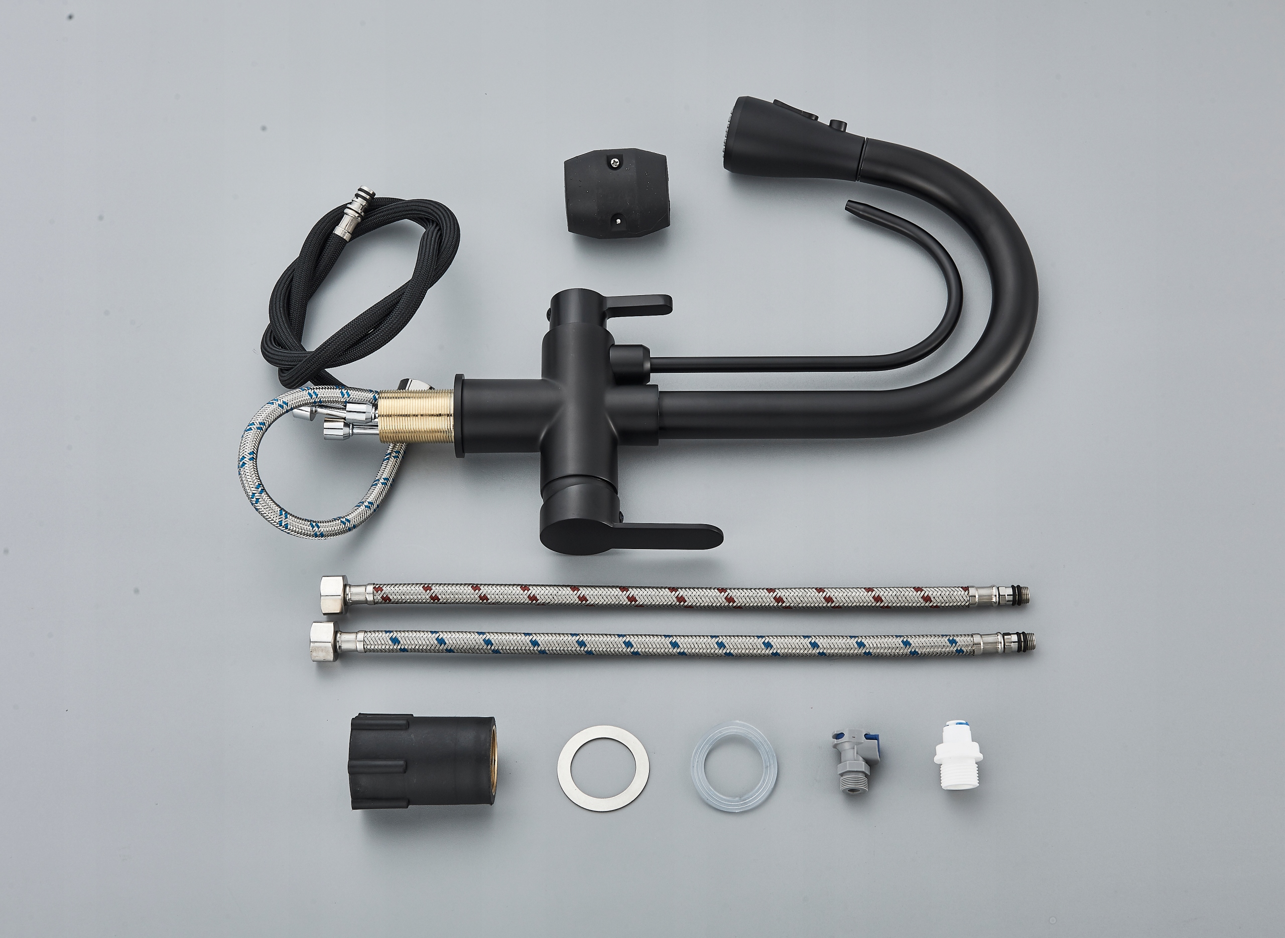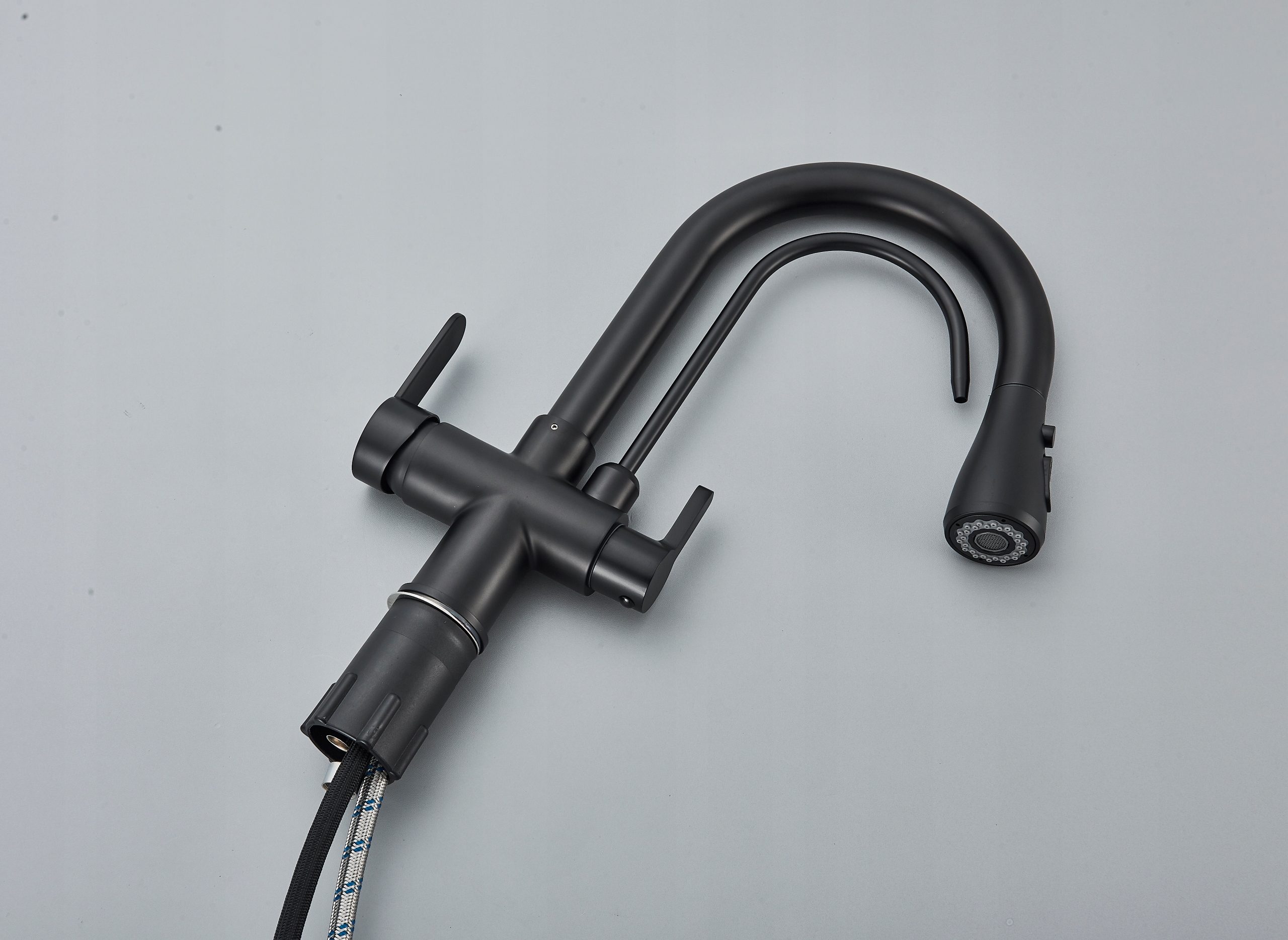 Кухонний акумулятор три -чорний фільтр, витягнутий еластичний носик, кран