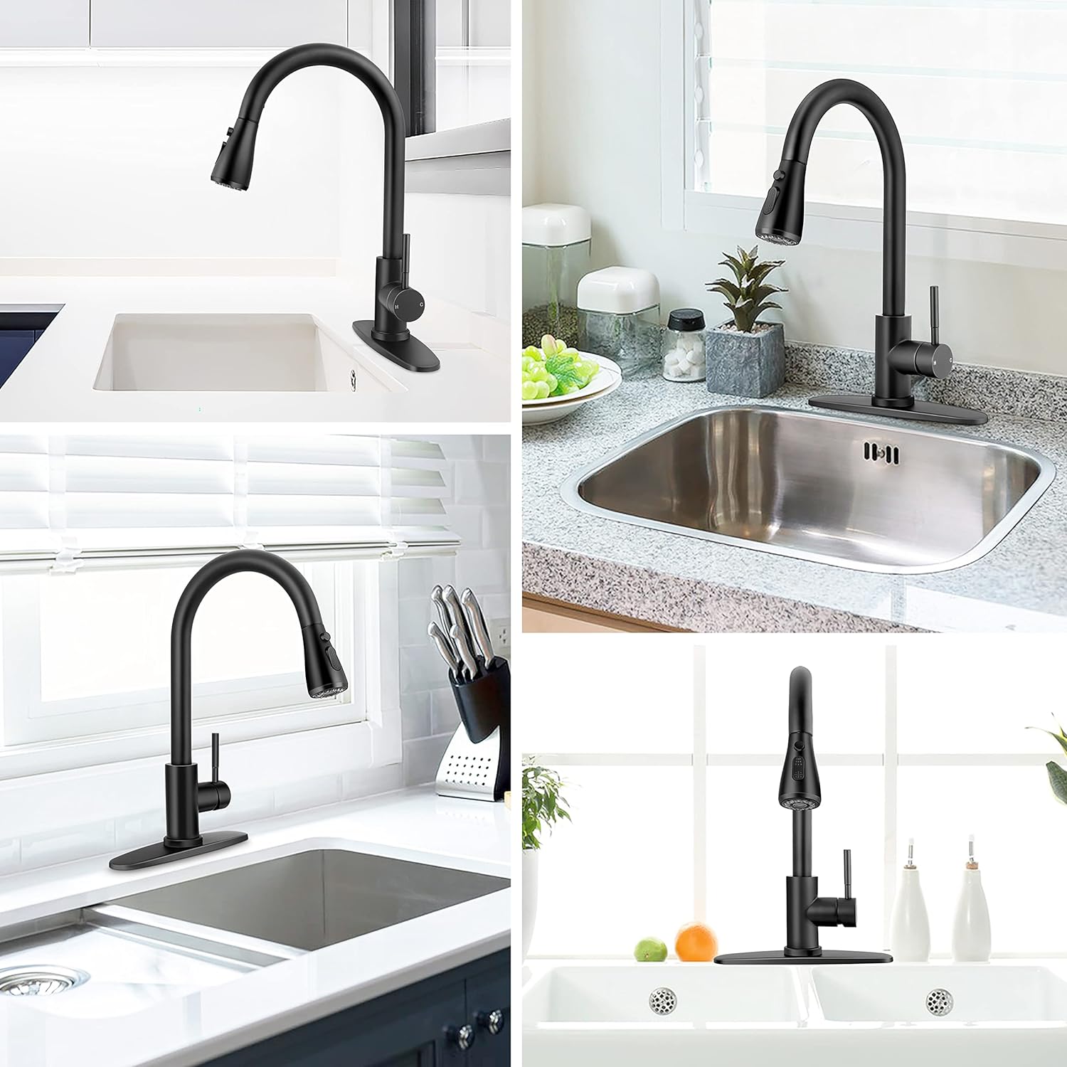 Кухонний акумулятор з розтягнутим носком, кухонний кран з 3 режимами потоку води та гарячою холодною водою G3/ 8 матового чорного