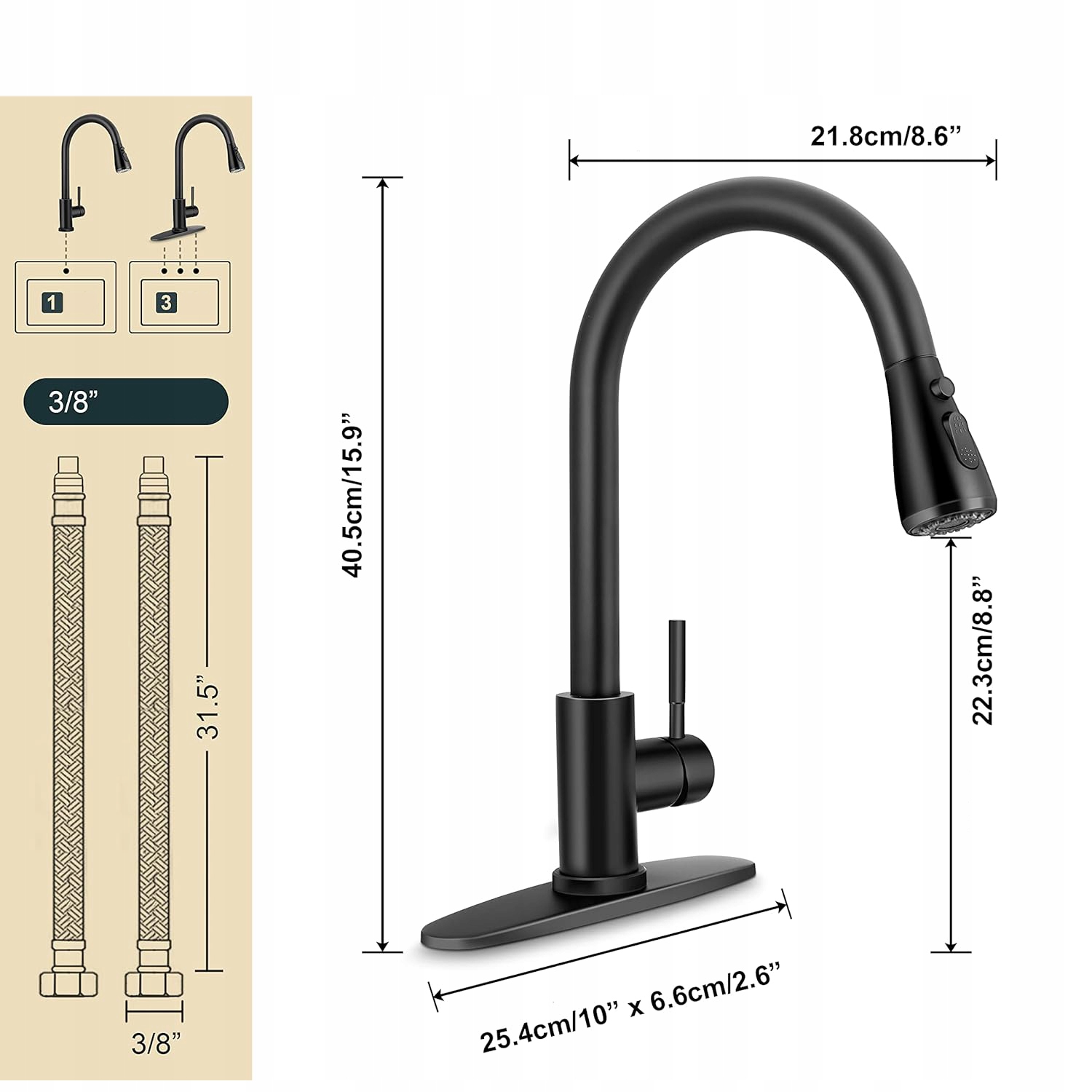 - Водні лінії H&C та шланг з гравітаційною кулею попередньо встановлені в кухонному крані, упаковка містить кришку для 1 або 3 отворів та набору інструментів конфігурації. У більшості випадків достатньо 25 хвилин для завершення установки.