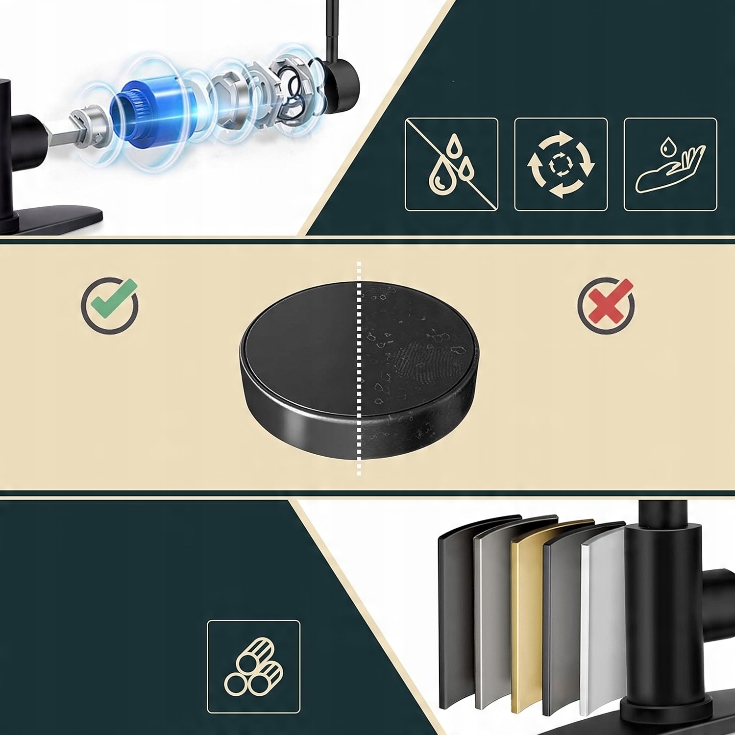 - Висока арка забезпечує більше місця для різних видів діяльності, пов’язаних з мийкою, модернізована система механічної реверсування дозволяє спрею головці завжди опинитися в оригінальному місці після використання.