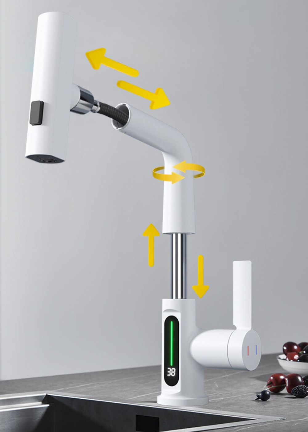 Кухонний акумулятор з водоспадом витягнутим цифровим поворотним світлодіодним дисплеєм