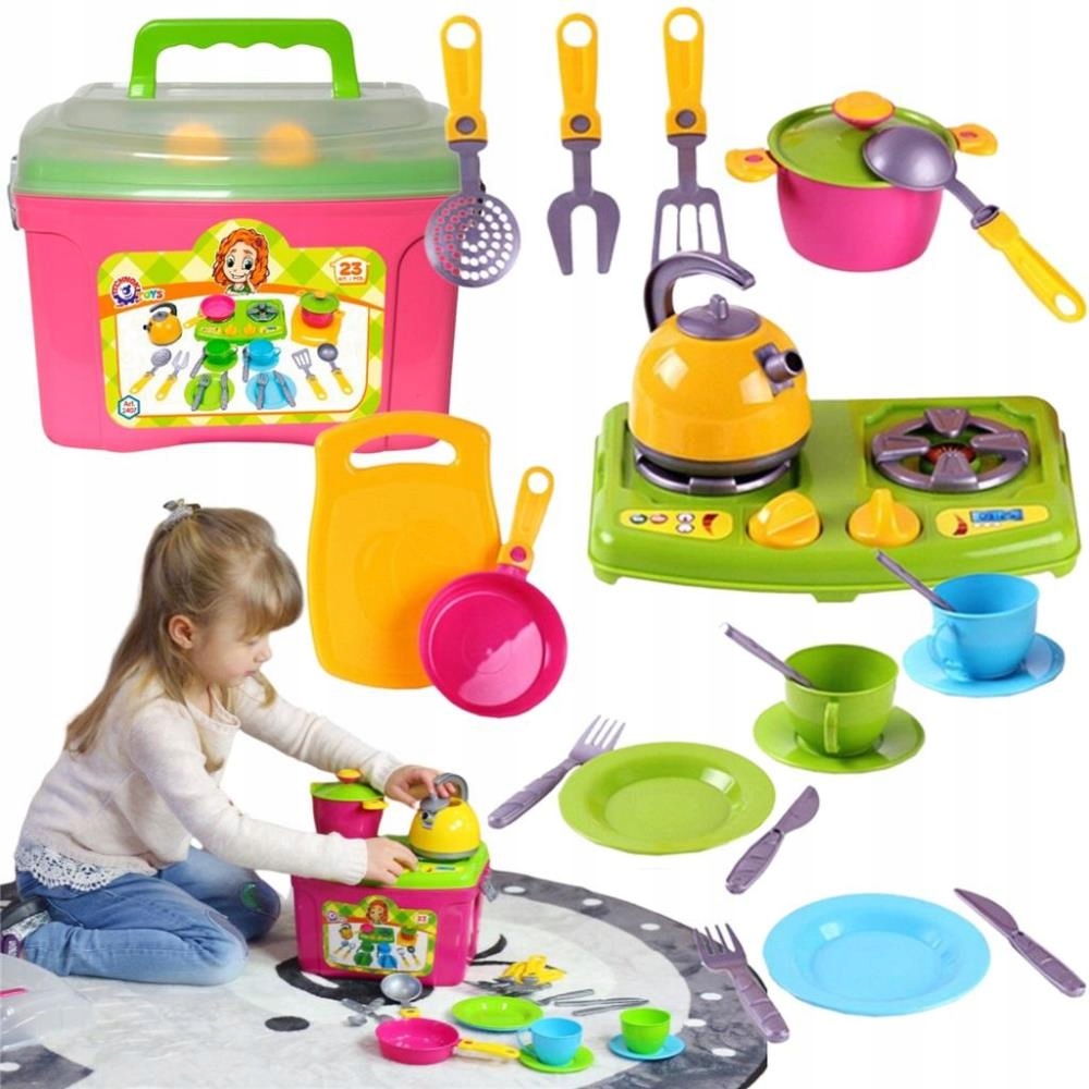 Комплектація: валіза з кришкою, плита, обробна дошка, блюдця (2 шт), чашки (2 шт), сковорода, каструля з кришкою, ложки, ножі, виделки (по 2 шт), чайник і кухонне приладдя (3 шт).