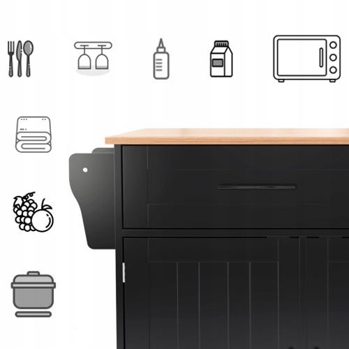🔵 Цей кухонний острів також постачається з чотирма твердими дерев’яними ніжками та центральною опорною пластиною. Якщо вам не потрібно переміщати цю шафу, коліщатка можна замінити ніжками.