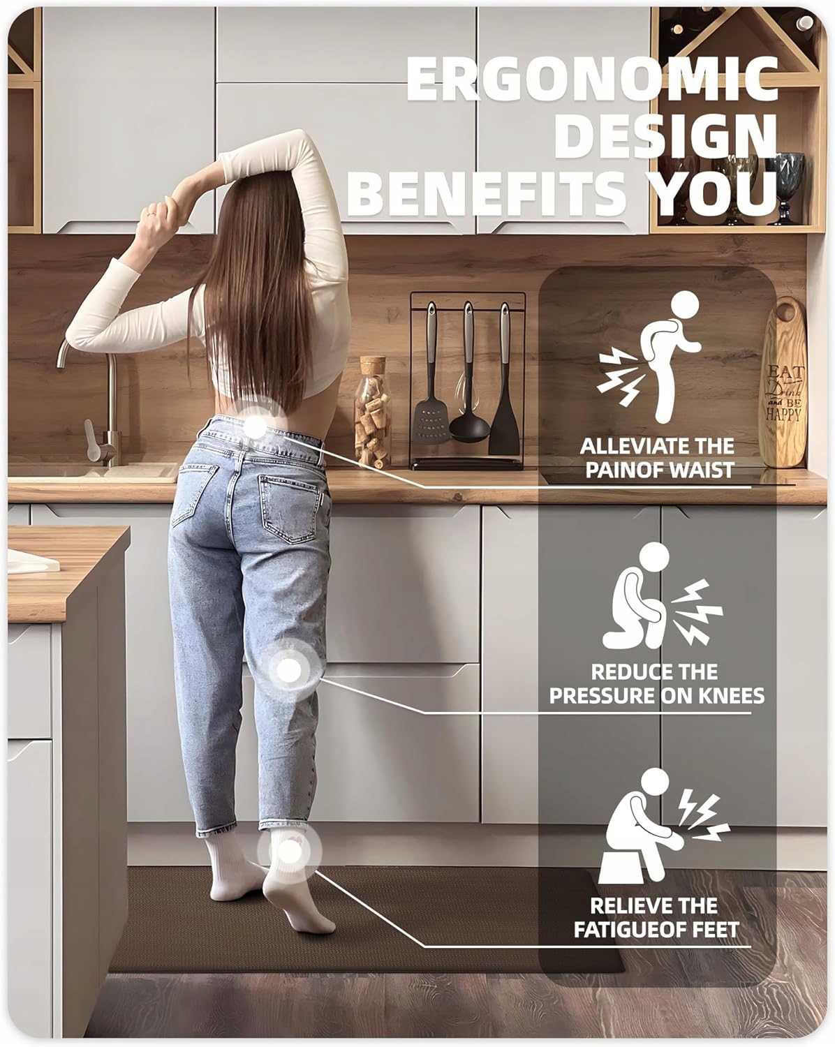 - Дуже комфортно: кухонний килимок виготовлений з доброзичливого пінопласту з повільним відображенням, що може допомогти розслабитися ногами, навіть якщо ви довго стоїте під час приготування страв або миття страв. Мої ноги більше не болять після приготування їжі або промивання посуду