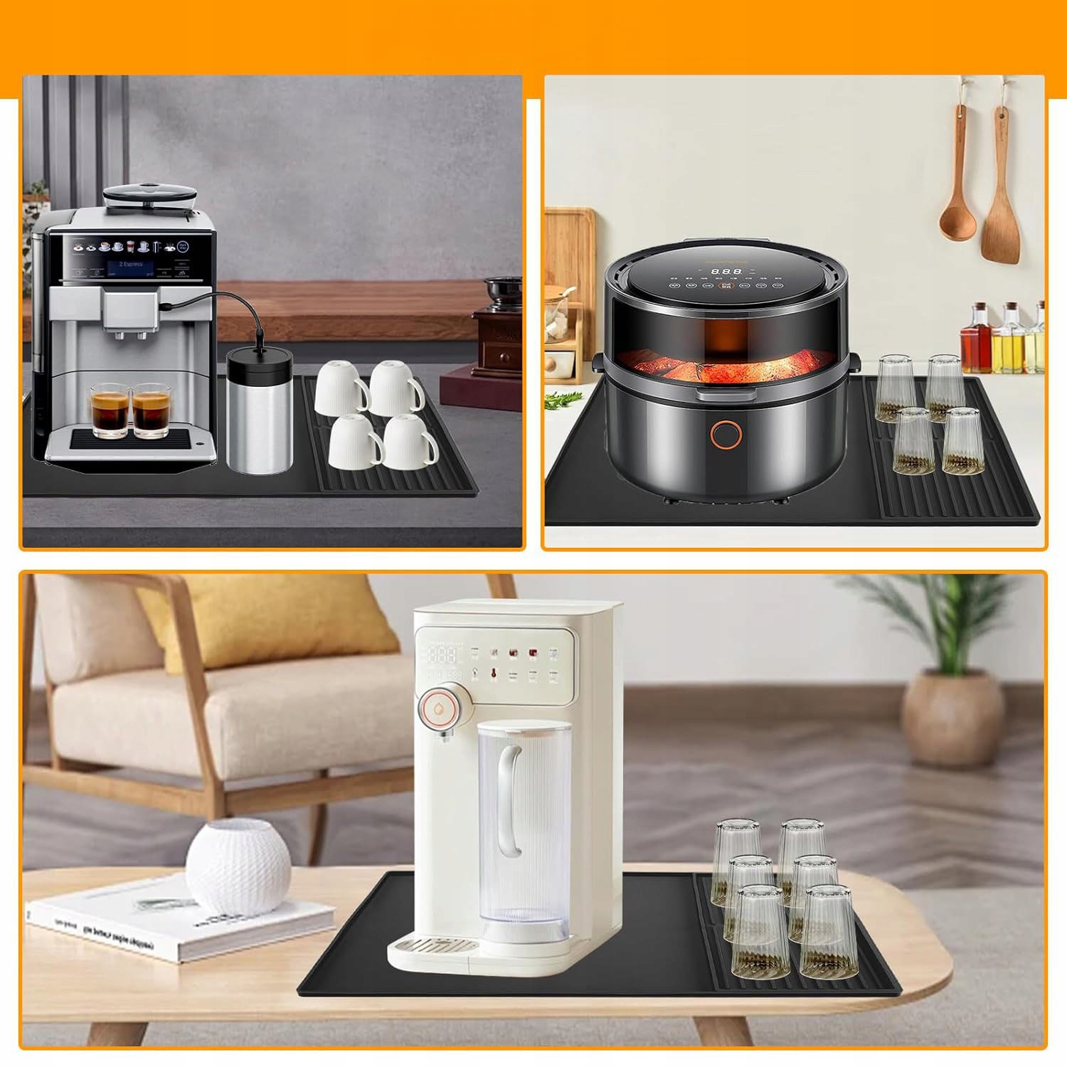 ☕ Дизайн 2-в-1: Цей силіконовий килимок для кави має дві зони - дві третини поверхні призначено для кавоварки, а решта частини призначена для щойно вимитих кавових кухлів.