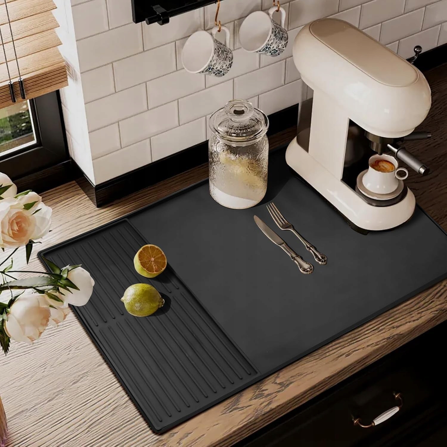☕ Захист від проливання: З закругленими кутами та високими піднятими краями, килимок затримує надлишок води або пролиття. кави, зберігаючи ваші стільниці чистими, сухими та захищеними від плям або пошкоджень.