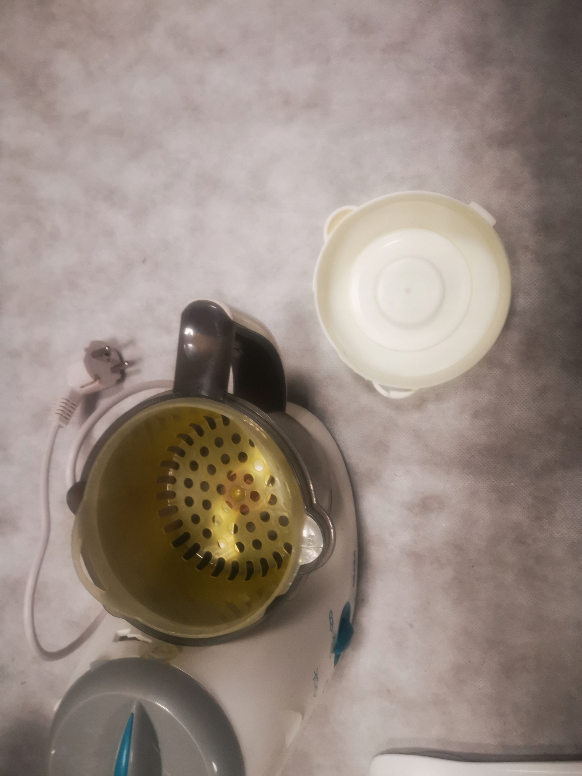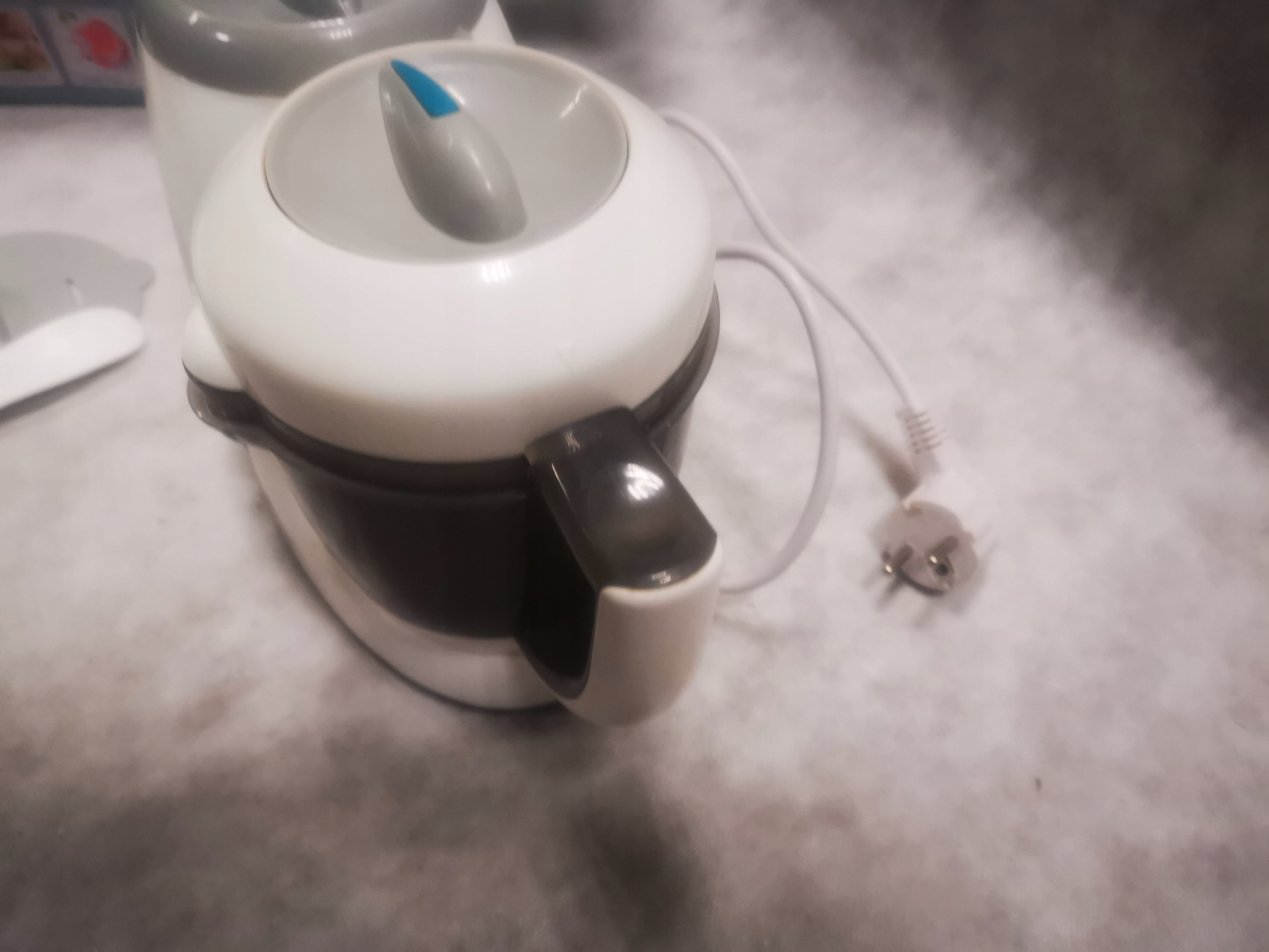 Товар б/у з дефектом. Робот працює належним чином, і варіння, і змішування активовані. Проте біля посудини з ручкою зламався крихітний шматочок пластику, який відповідає за звільнення запобіжника після розміщення посудини з ручкою в робота (це показано на фото № 13). Фотографії № 4-13 демонструють візуальний стан пристрою.