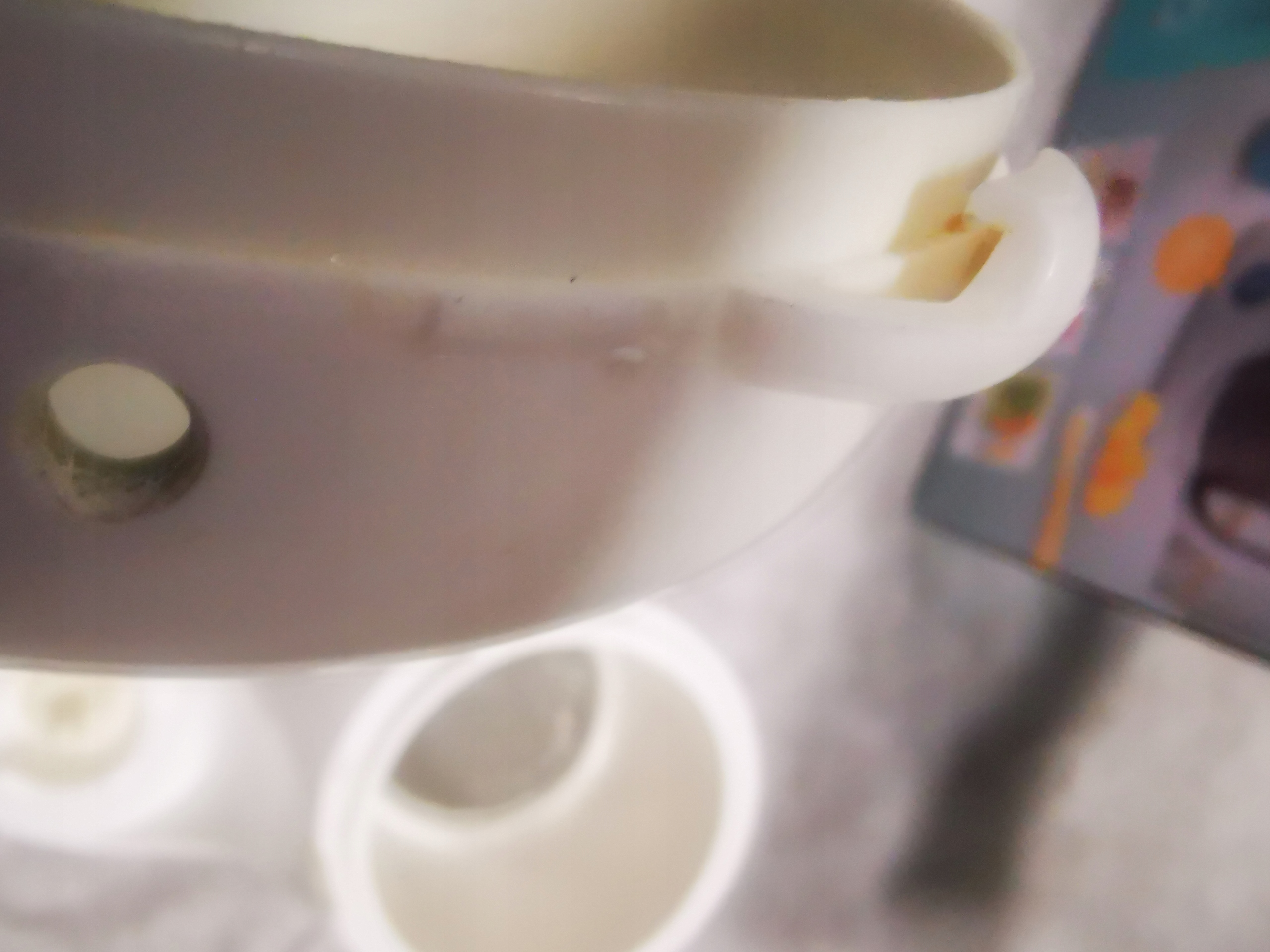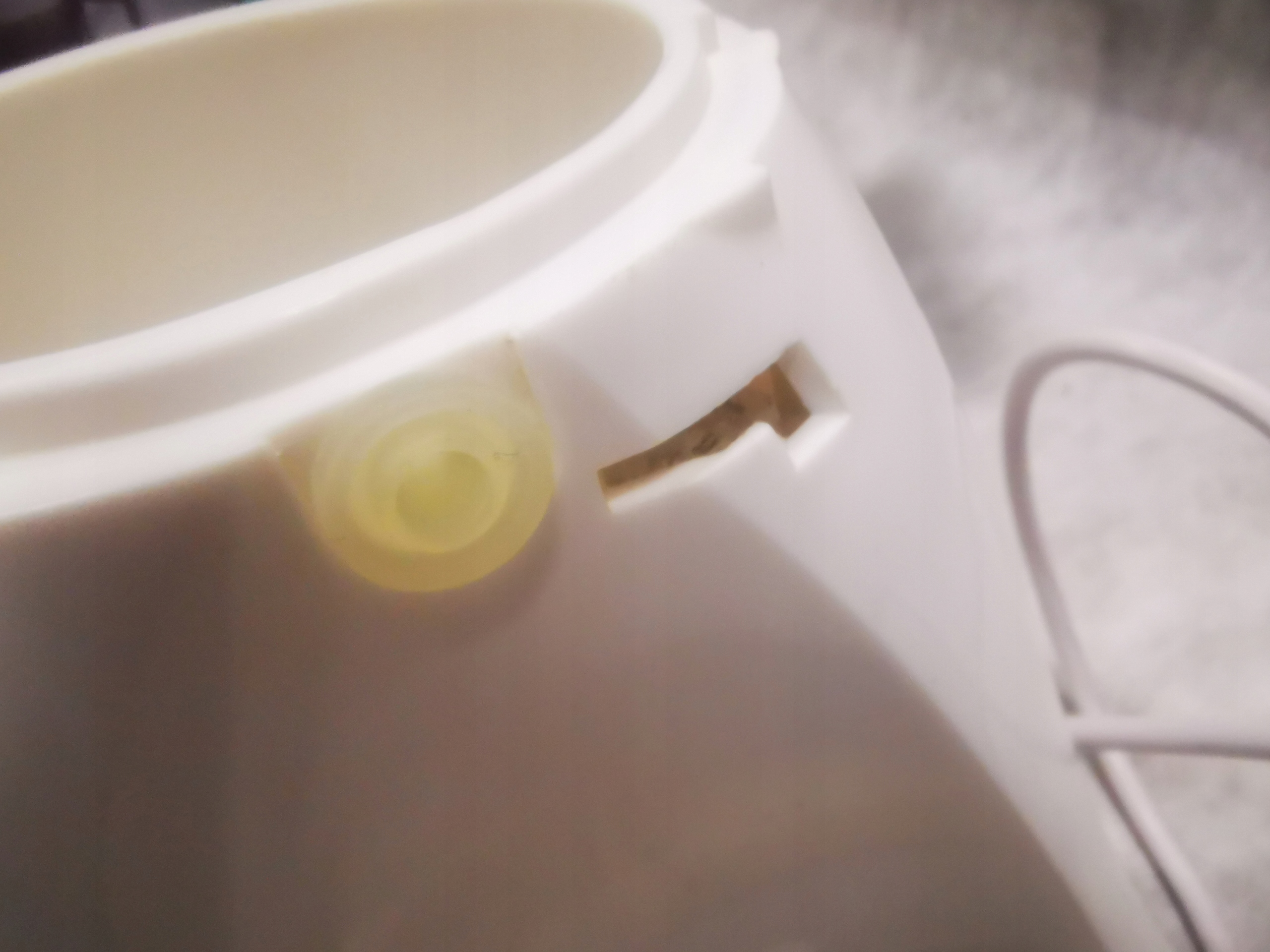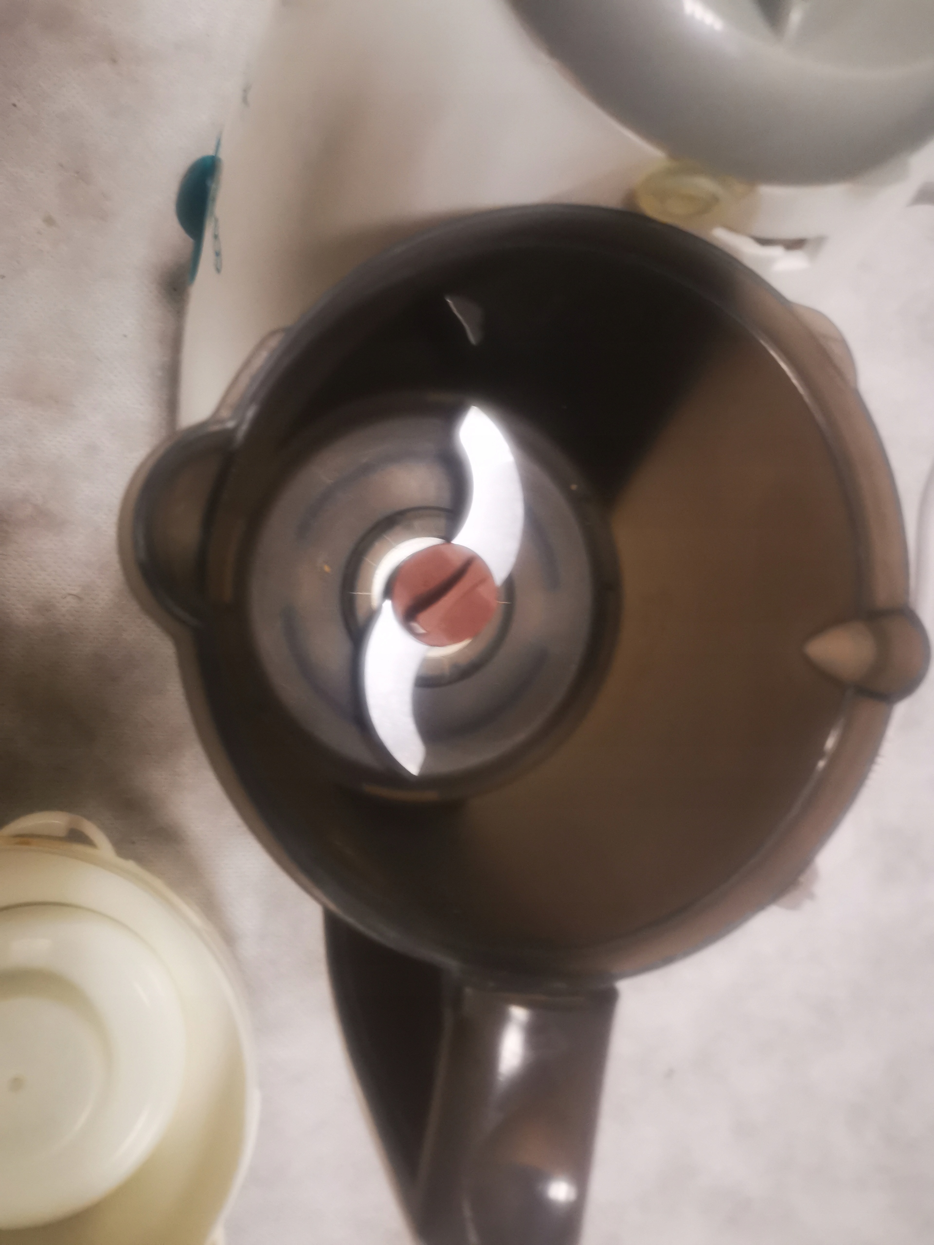 Виріб, що був у використанні з дефектом. Робот працює належним чином, і варіння, і змішування активовані. Проте біля посудини з ручкою зламався крихітний шматочок пластику, який відповідає за звільнення запобіжника після розміщення посудини з ручкою в робота (це показано на фото № 13). Фотографії № 4-13 демонструють візуальний стан пристрою.